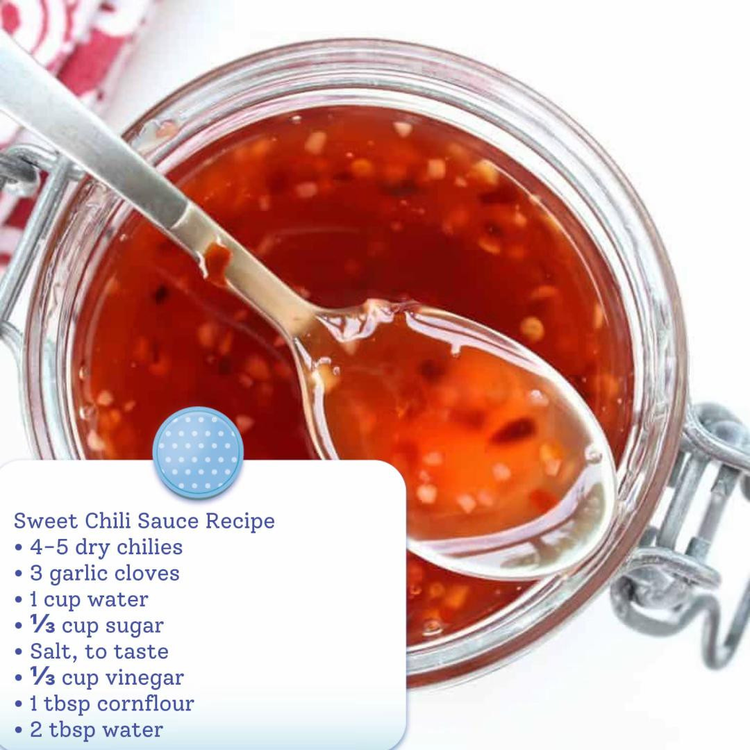 In a pan, add chilies, garlic, 1 cup water, and sugar. Mix well and cook for 2 minutes.