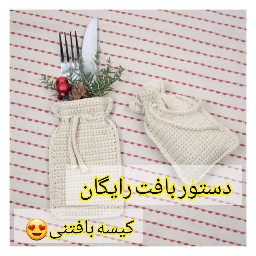 آموزش بافت کیسه بافتنی زیبا برای قاشق و چنگال