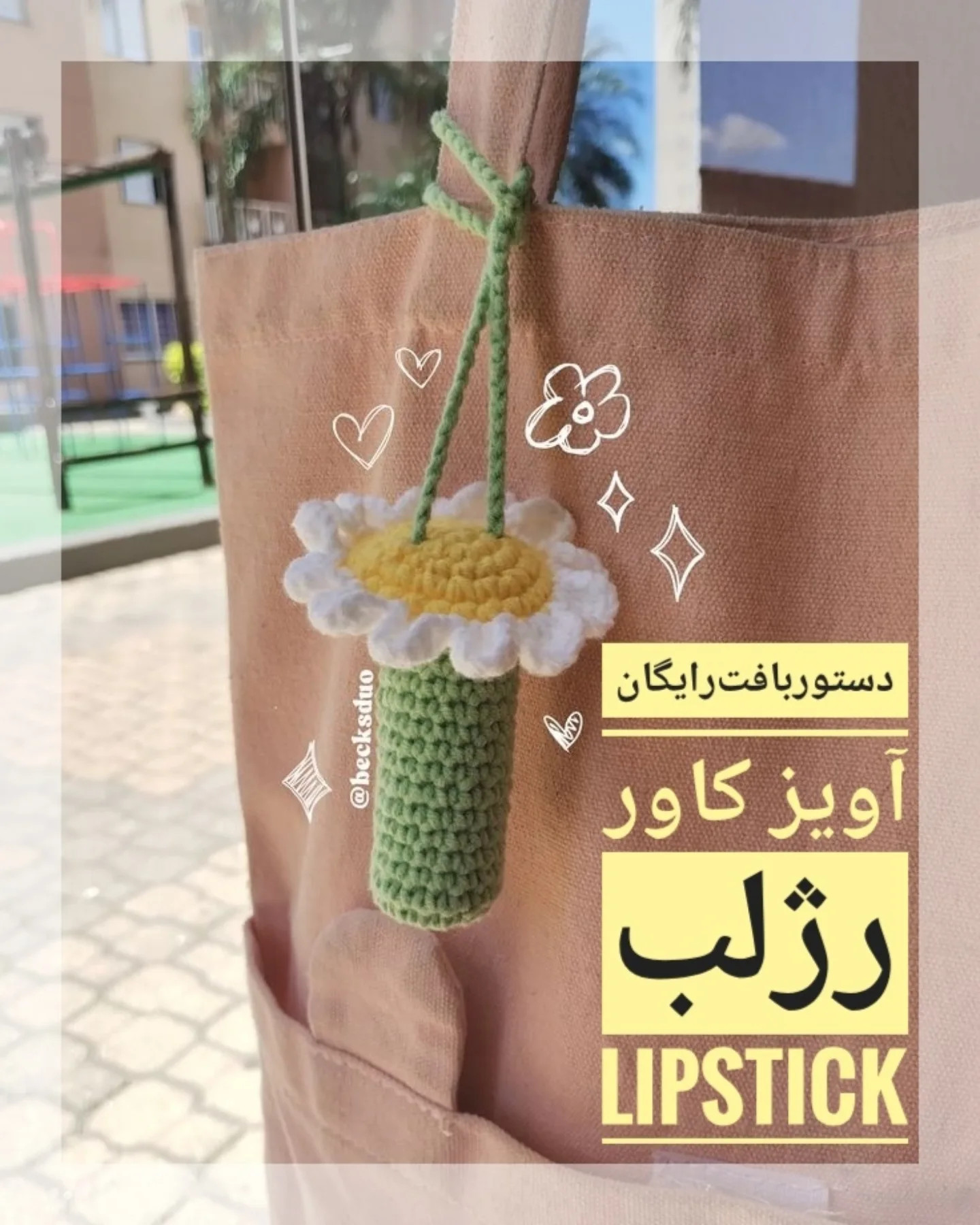 آویز کاور رژلب با طرح گل قلاب بافی