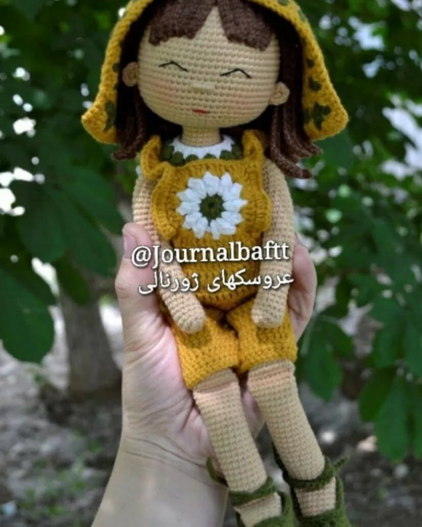 عروسک قلاب بافی با کلاه زرد گلدار