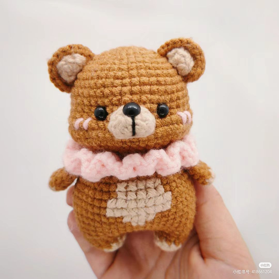 Adorable Crochet Bear with Pink Ruffle Collar Pattern