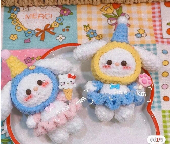 Adorable Crochet Bunnies with Ice Cream and Paw Accessories