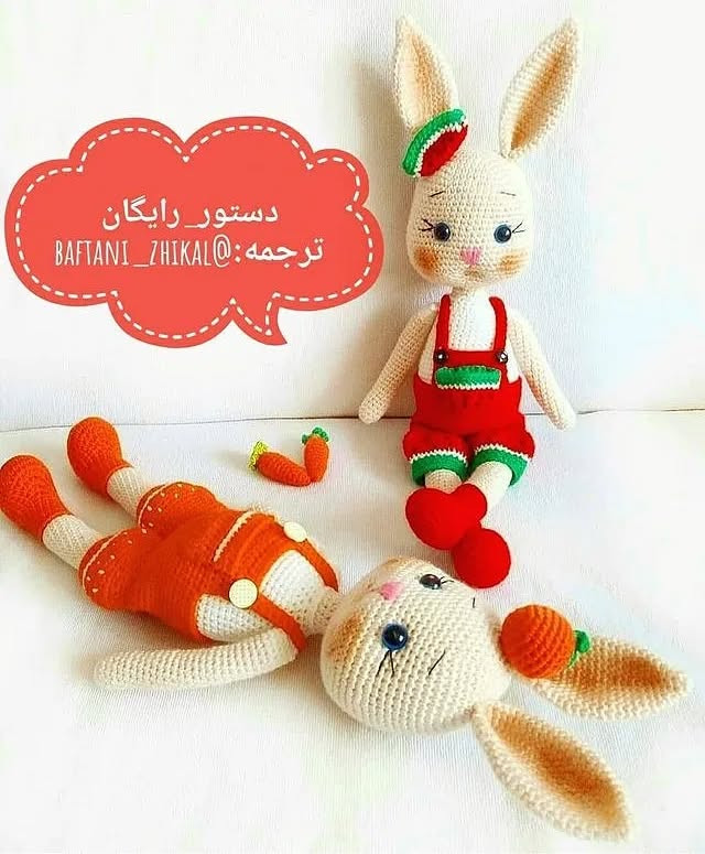 الگوی خرگوش قلاب بافی با لباس نارنجی و هویج