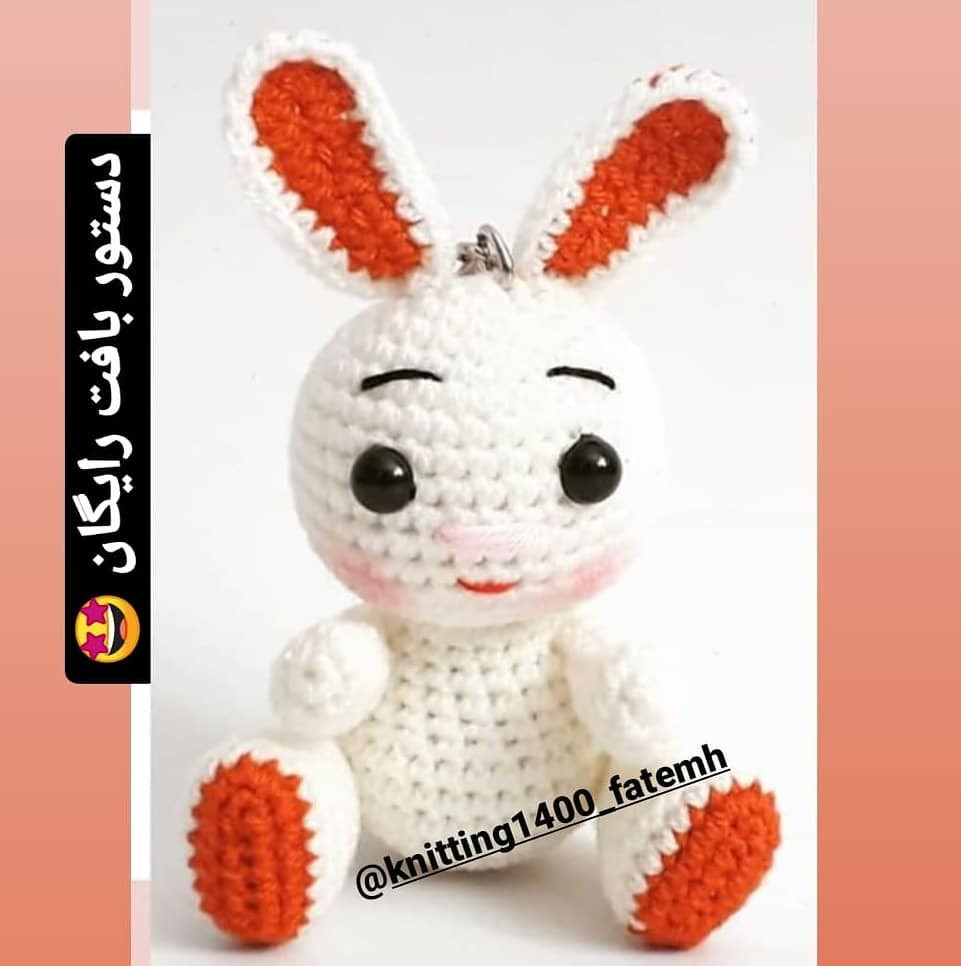 الگوی قلاب بافی عروسک خرگوش با گوش نارنجی