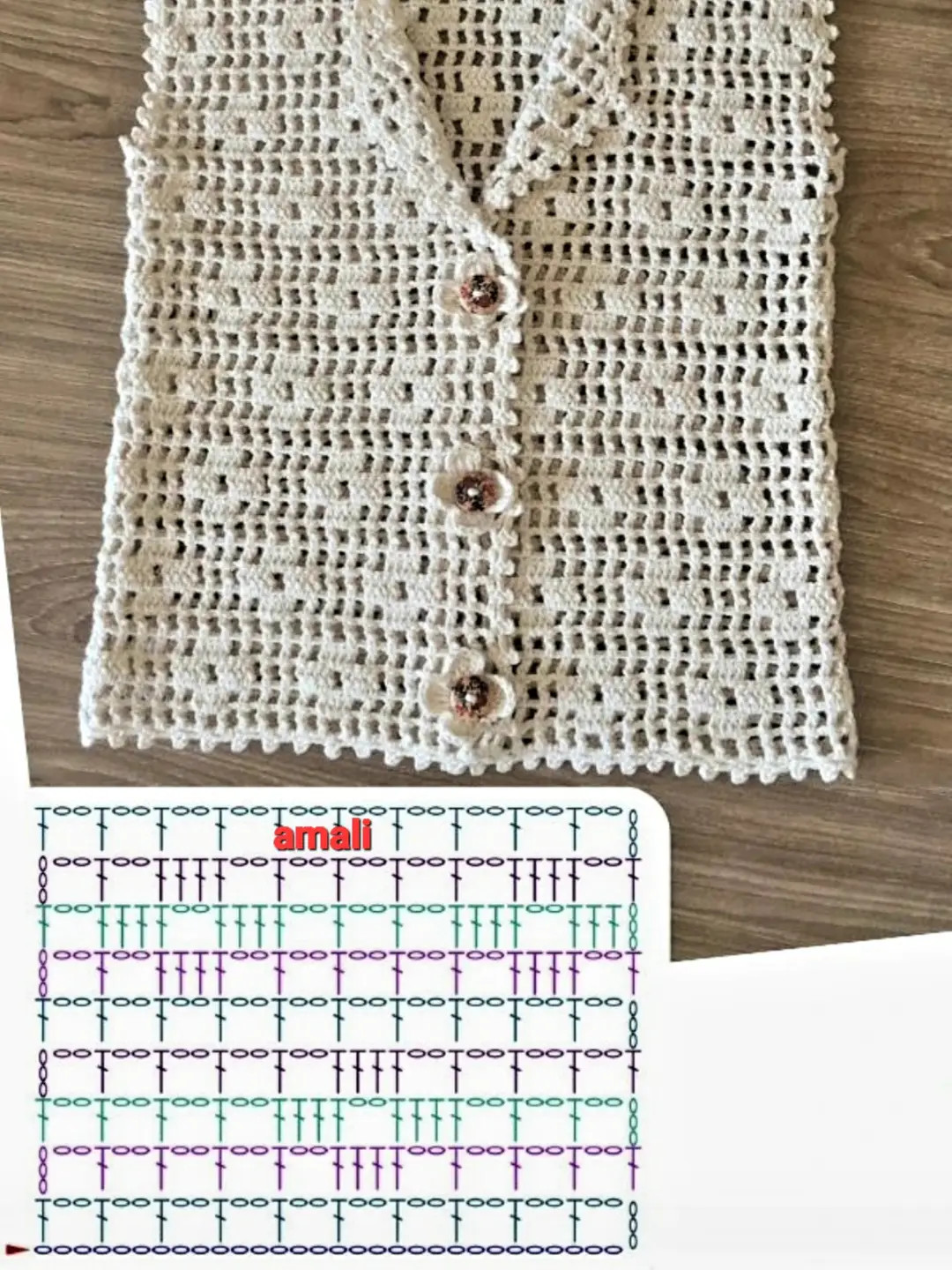 الگوی قلاب بافی جلیقه زنانه با دکمه