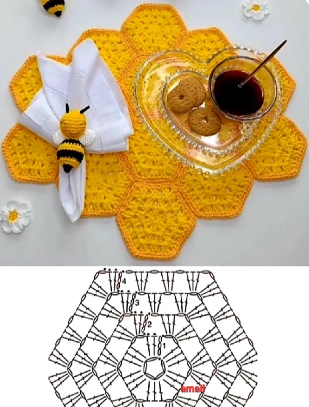 الگوی قلاب بافی شش ضلعی زنبور عسل برای سفره