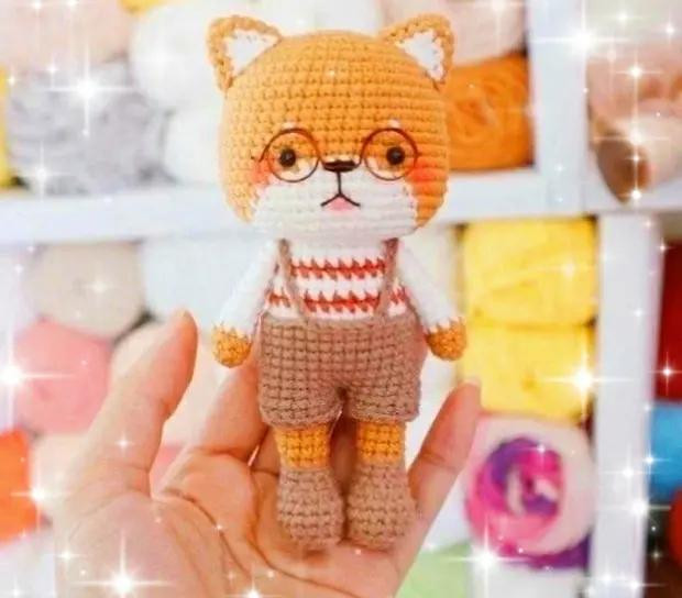 Амиигуруми котенок в очках и шортах - схема вязания.