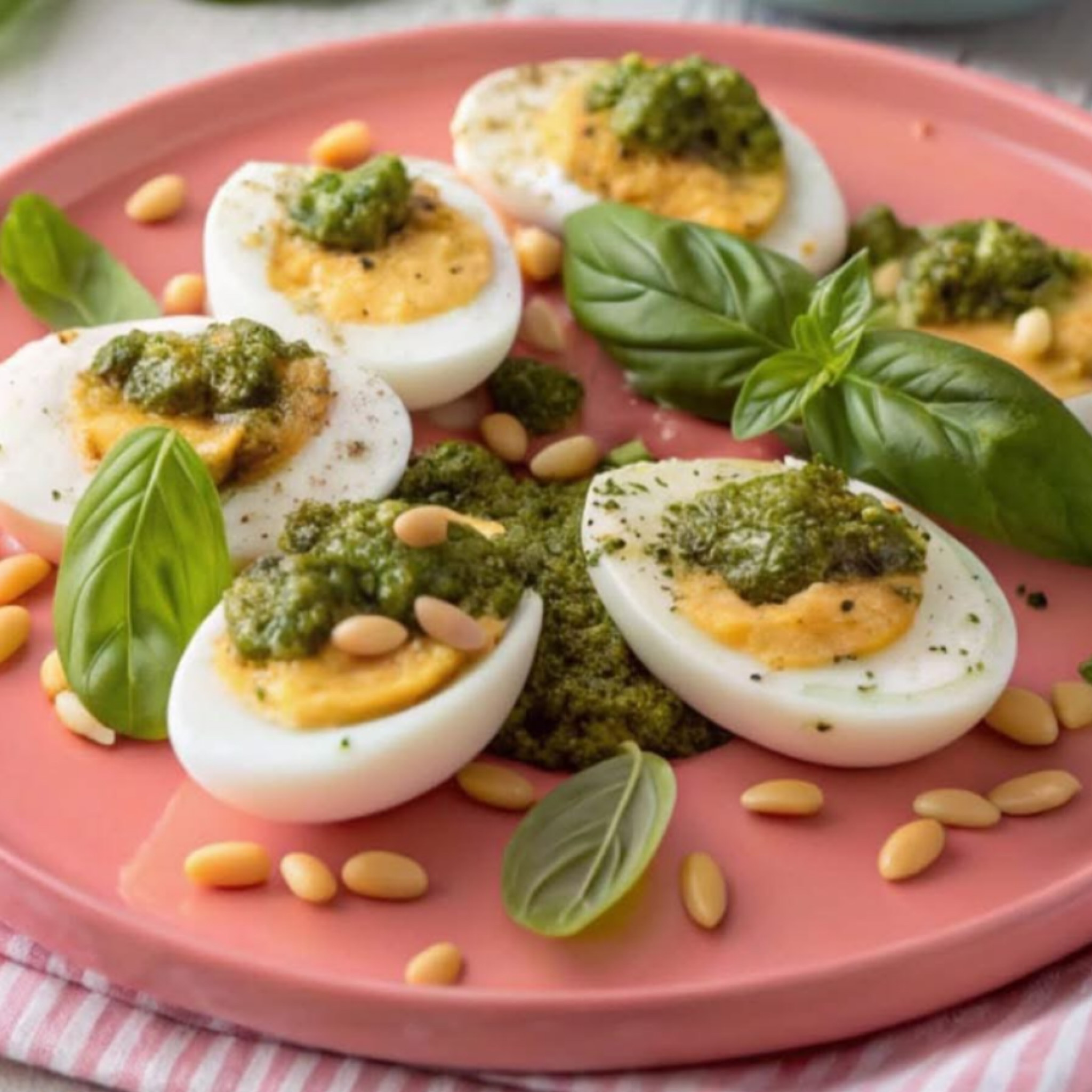 Directions: Heat a nonstick skillet over medium heat and add the pesto directly to the pan. Let it sizzle slightly to release the aroma. Crack the eggs into the pan over the pesto and cook sunny-side up for 2-3 minutes, or until the whites are set and the yolks are still runny. Meanwhile, toast your sourdough bread slices until golden and crisp. Layer each toast with sliced avocado, then top with the pesto eggs. Season with salt, pepper, and a sprinkle of red chili flakes if desired. Garnish with fresh basil or microgreens and serve immediately.
