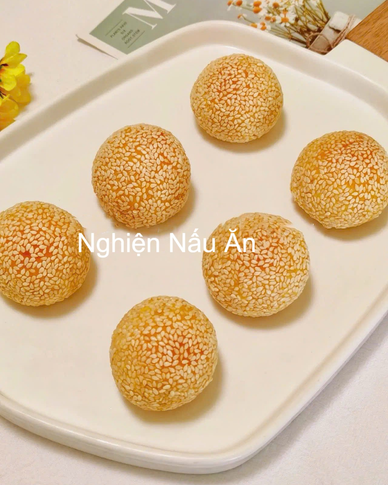 LƯU NGAY CÁCH LÀM BÁNH BÍ NGÔ BẰNG NỒI CHIÊN KHÔNG DẦU. Nguyên liệu: - Bí ngô: 300g - Bột nếp: 280g - Đường trắng: 30g - Vừng trắng, dầu ngô Cách làm - Bí ngô g.ọt vỏ, c.ắt lát rồi đem hấp chín, nghiền nhuyễn khi còn nóng. Cho đường và bột nếp vào bát rồi trộn đều. - Nhào bột thành khối dẻo mịn ko dính tay. Lăn bột thành thanh dài rồi chia thành từng phần nhỏ, viên từng phần bột nhỏ thành viên tròn (~45g). - Nhúng viên bột qua nước, rồi lăn qua hạt vừng sao cho vừng phủ đều viên bột. Dùng tay chà nhẹ vào viên bột để vừng bám chặt trên bột. - Xếp vào nồi chiên không dầu, có lót giấy nến. Phết 1 lớp dầu ngô mỏng lên bề mặt bột. Nướng ở nhiệt độ 180 độ C trong 10 phút, lật mặt rồi nướng thêm khoảng 10 phút nữa là hoàn thành! Chúc cả nhà thành công với cách làm trên.