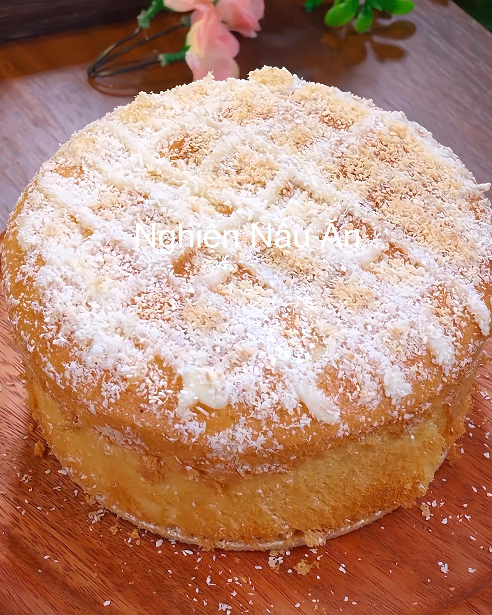 LƯU NGAY CÁCH LÀM BÁNH BÔNG LAN DỪA MỀM XỐP THƠM NGON . Chuẩn bị nguyên liệu : - 3 quả trứng gà - 150g bột bánh bông lan - 25ml sữa tươi ( không đường ) - 30g vụn cơm dừa sấy - Sốt salad ngọt Cách Làm : 1 . Cho trứng - sữa và bột bánh bông lan vào bát . Khuấy đều đến khi thành hỗn hợp mịn và không còn vón cục . 2 . Đổ ra khuôn , dàn đều cho hết bọt khí . 3 . Cho sốt salad ngọt vào túi bắt kem , nặn lên bề mặt bột rồi rắc vụn cơm dừa lên . 4 . Xếp vào nồi chiên không dầu ở 160° trong 30 phút rồi lấy ra cắt miếng vừa ăn . Chúc cả nhà thành công với công thức này nhé.