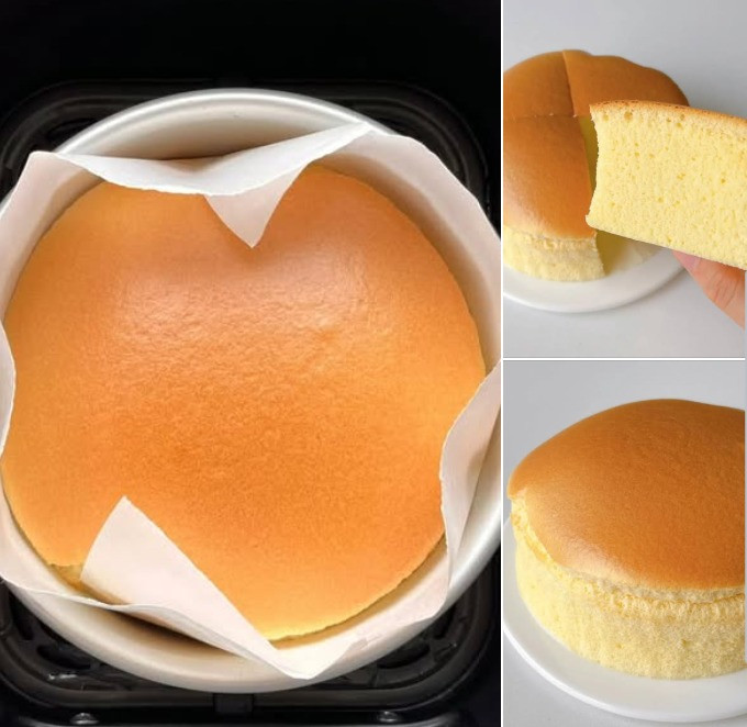 LÀM BÁNH BÔNG LAN XỐP MỀM BẰNG NỒI CHIÊN KHÔNG DẦU 🌟 Nguyên liệu: 50g bột mì ít gluten 40g dầu ngô 40g sữa 3 quả trứng 1g muối 40g đường Vài giọt nước cốt chanh 🌟 Cách làm: Bước 1⃣️: Rây trước bột mì có hàm lượng gluten thấp vào tô, đun nóng dầu ngô đến 70-80 độ, đổ vào bột mì và trộn đều. Bước 2⃣️: Thêm sữa vào trộn đều, sau đó cho 3 lòng đỏ trứng vào trộn đều. Bước 3⃣️: Thêm muối và vài giọt nước cốt chanh vào ba lòng trắng trứng và đánh cho đến khi thật bông. Bước 4⃣️: Cho 1/3 lượng lòng trắng trứng vào hỗn hợp lòng đỏ trứng và trộn đều, sau đó cho tiếp phần lòng trắng trứng còn lại trộn đều. Bước 5⃣️: Lót giấy dầu ở đáy và xung quanh mặt trong của khuôn bánh, dùng giấy thiếc bọc phía dưới để nước không lọt vào, đổ bột bánh vào khuôn và lắc cho hết bọt khí. Bước 6⃣️: Thêm nước vào đáy nồi chiên không dầu và nướng ở 135 độ trong khoảng 60 phút.