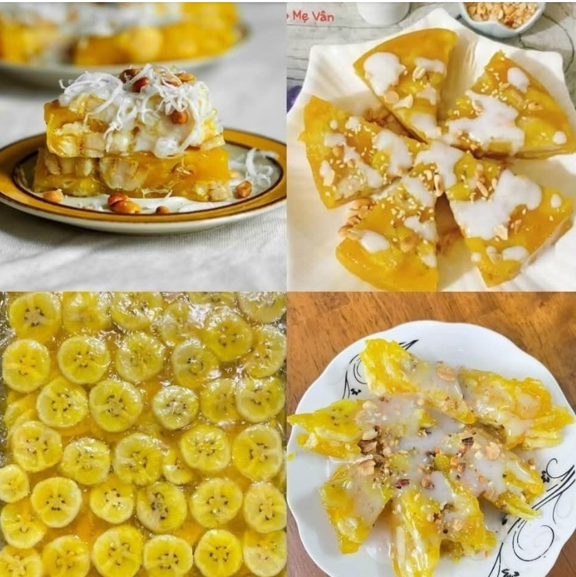 Bánh chuối hấp rất dễ làm lắm nha mn ơi 😋😋 * nguyên liệu: - 200gr bột năng - 20gr bột gạo - 1 xíu muối - 70gr đường - 200ml nước ấm - 10 trái chuối sứ chín - 1 xíu bột nghệ tạo màu * cách làm: - bột năng + bột gạo + muối + đường + bột nghệ + nước ấm trộn chung lại thành 1 hỗn hợp. - cách lát mỏng 10 trái chuối vào hỗn hợp trộn đều. * cách hấp: - quét dầu vào khuôn hấp. - đổ hỗn hợp chuối vào khuôn,sắp cho đẹp chuối trên mặt. - đem hấp 35phut ( che khăn lại để nước k rớt vào nồi ) - để nguội hẳn mới lấy chuối ra. *** phần nước dừa : - 300ml nước cốt dừa - 1 muỗng canh bột năng - 70gr đường - 1 xíu muối + tất cả trộn đều cho tan xong bắp lên bếp nấu thấy sền sệt là xong. ** chúc các bạn thành công. Cre Hồng Vân Ẩn bớt