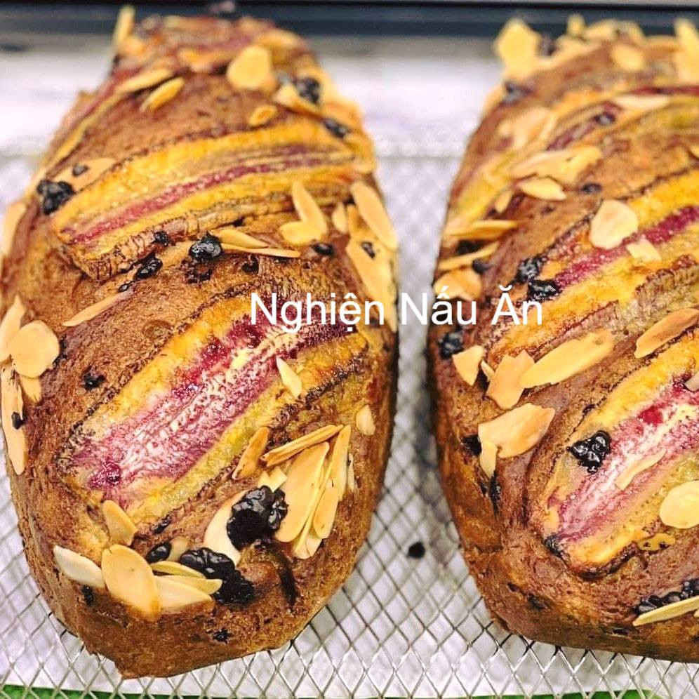 HƯƯỚNG DẪN CÁCH LÀM BÁNH CHUỐI NƯỚNG NGON BẤT BẠI! Nguyên liệu: - 4 trái chuối chín - 40g đường - 1/2 muỗng cf muối - 1 quả trứng gà - 60ml dầu ăn - 110ml sữa có đường - 220gr bột mì đa dụng - 30g bột cacao hoặc milo - 10gr baking soda Cách làm: - Nghiền nát 3 quả chuối+ 110ml sữa và đường cho thành 1 hỗn hợp nhuyễn sệt. Sau đó cho thêm dầu ăn + muối + trứng gà đánh mịn - Rây bột mì + milo và baking soda vào hỗn hợp trên. Trộn đều nhưng không trộn quá lâu tránh bị chai bánh. - Đổ bánh ra khuôn, lấy 1 trái chuối còn lại cắt lát mỏng xếp lên mặt bánh, rắc thêm hạnh nhân lát + vừng lên đều bánh để trang trí và đem bánh đi nướng (trước khi đổ bánh phết 1 lớp bơ mỏng vào khuôn để chống dính ạ) Nướng bánh bằng NCKD - Set nhiệt 180 độ trc 10p làm nóng nồi - Nướng lần 1 ở 130 độ 30p - Nướng lần 2 thêm 30p với nhiệt 120 độ, muốn bánh có phần vỏ giòn hơn có thể nướng thêm 20p nữa với 100 độ (nhưng thôi em bỏ qua vì 1 tiếng là đã quá đủ để chết thèm rồi) Nướng bằng lò - Làm nóng lò nướng trước 15p ở nhiệt 200 độ - Lần 1 ở 150 độ 50p - Lần 2 ở 220 độ 10p (tuỳ từng lò mình chú ý kiểm tra bánh nha) Vậy là đã xong, Chúc cả nhà thành công với cách làm trên.