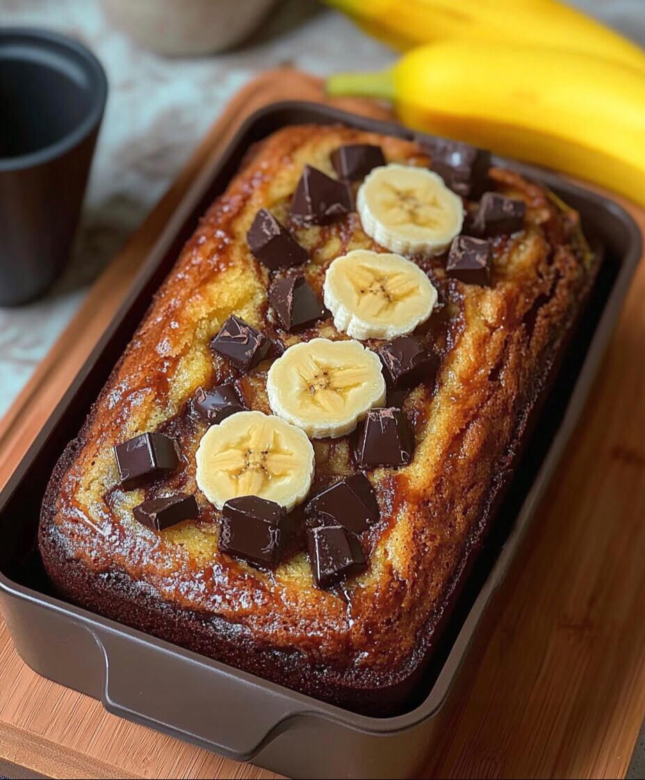 2️⃣ Tiếp theo, cho quả óc chó hoặc hạnh nhân băm nát nhỏ và sô cô la chip vào, trộn đều rồi đổ vào khuôn. Bạn có thể trang trí thêm chuối cắt lát và sô cô la chip để tăng thêm hương vị.