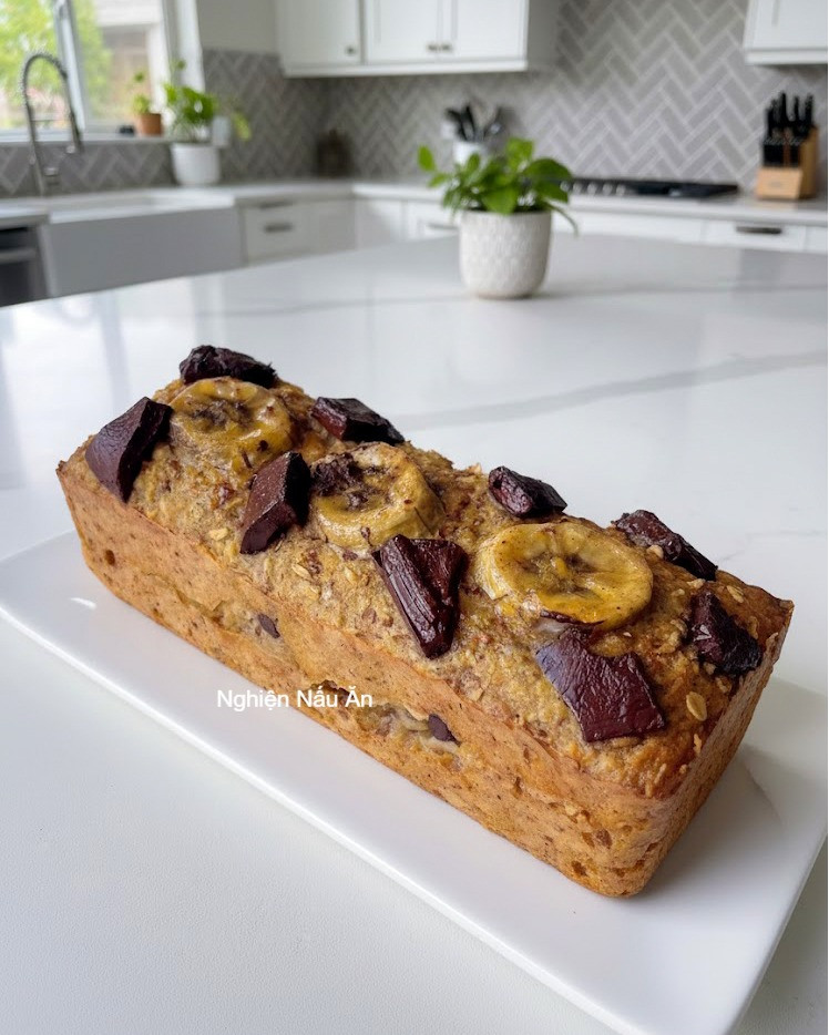 BÁNH CHUỐI YẾN MẠCH SOCOLA NGỌT TỰ NHIÊN, BÉO NHẸ, ĂN LÀ GHIỀN! Cả nhà ơi, nếu đang tìm một món bánh vừa ngon vừa tốt cho sức khỏe thì thử ngay công thức này nhé! Chuối chín ngọt dịu, yến mạch dẻo mềm, socola tan chảy thơm lừng ăn là “tan chảy”! Nguyên liệu cần chuẩn bị: - Chuối chín: 2 quả (1.5 quả nghiền, 0.5 quả thái lát) - Sữa tươi không đường: 20ml - Trứng gà: 1 quả - Yến mạch cán dẹt: 120g - Bột nở: 5g - Socola đen: 1 thanh (bẻ nhỏ) Các bước thực hiện: 1. Chuẩn bị hỗn hợp bánh - Nghiền nhuyễn 1.5 quả chuối trong tô lớn. - Thêm trứng gà, trộn đều đến khi hỗn hợp mịn. 2. Trộn nguyên liệu khô - Thêm yến mạch, bột nở và sữa tươi vào hỗn hợp chuối. - Trộn đều đến khi hỗn hợp hòa quyện. 3. Lắp bánh - Đổ ½ hỗn hợp vào khuôn đã lót giấy nến. - Xếp chuối thái lát và socola bẻ nhỏ lên trên. - Đổ phần hỗn hợp còn lại vào, phủ thêm chuối và socola lên mặt bánh. 4. Nướng bánh - Làm nóng lò ở 170°C. - Nướng bánh trong 25 phút đến khi mặt bánh vàng nhẹ, thơm lừng. - Lấy ra để nguội rồi cắt miếng vừa ăn. Thành phẩm: Bánh chuối yến mạch socola mềm ẩm, ngọt tự nhiên, thơm béo, socola tan chảy quyện cùng chuối cực kỳ thích hợp cho bữa sáng, ăn vặt hoặc mang đi học, đi làm! Chúc cả nhà thành công với món bánh chuối yến mạch socola siêu hấp dẫn này nhé!