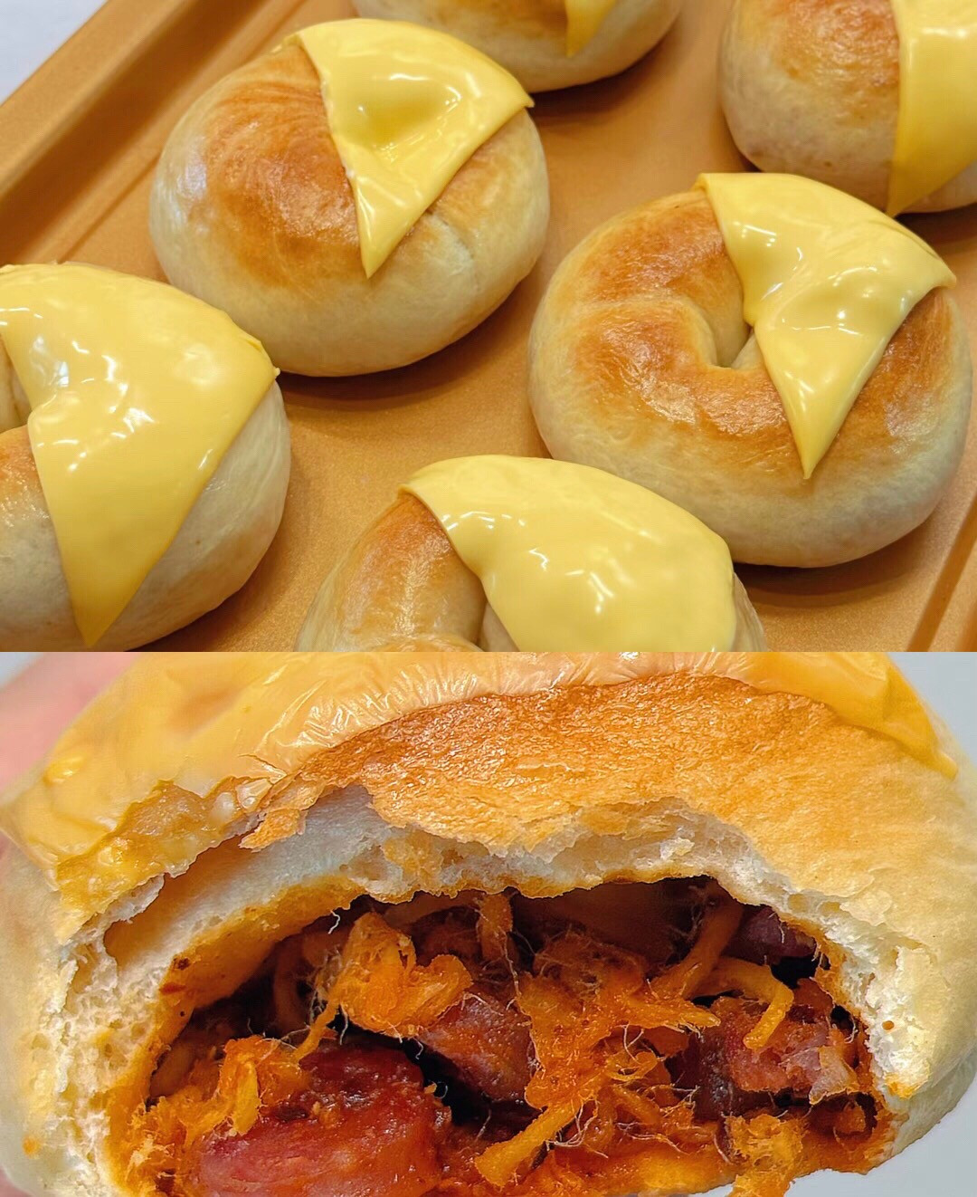 Bánh mì bagel phô mai, xúc xích và chà bông này ngon quá!❗️