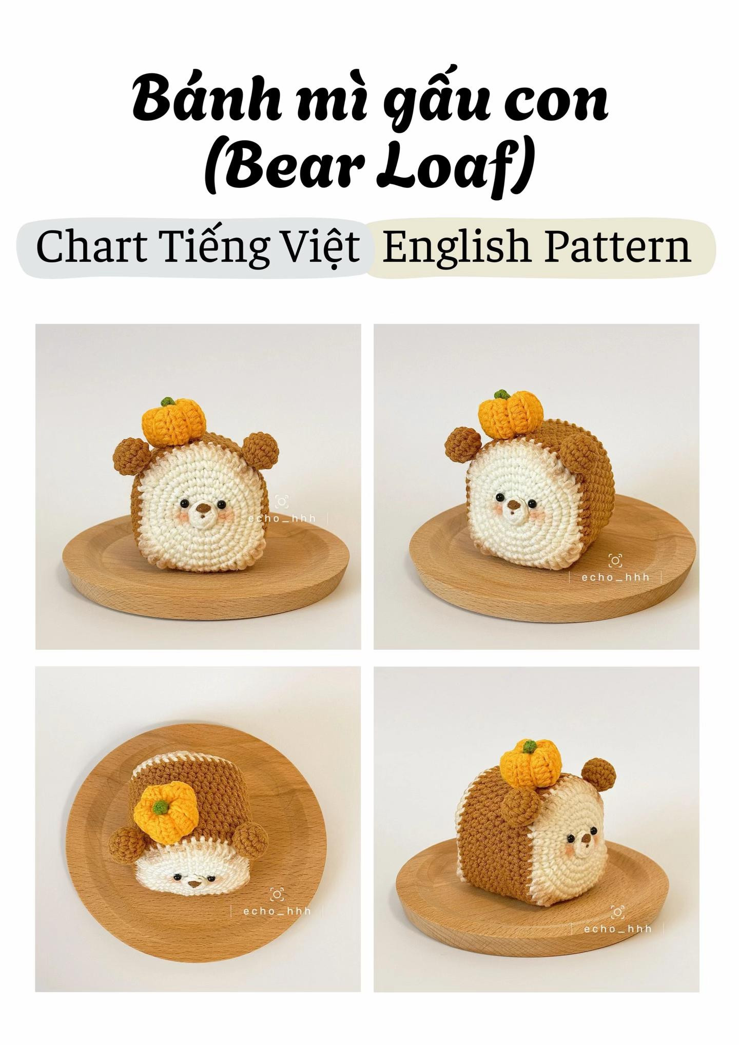 Chart móc: Bánh mì gấu con 🍞🐻 Crochet pattern: Bear loaf 🌷 #chartmoclen #freepatterncrochet #crochetpattern #bearloaf #gấu