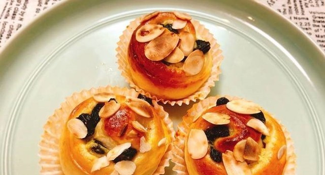 Nguyên liệu : 1️⃣300 gam Bột mì số 13 2️⃣60 gam Đường 3️⃣1 Trứng gà 4️⃣20 gam Bột sữa 5️⃣5 gam Men khô 6️⃣30 gam Whipping cream 7️⃣2 gam Muối 8️⃣30 gam Bơ lạt 9️⃣150 gam Sữa tươi 🔟80 gam Bột custard 1️⃣1️⃣Nho khô 1️⃣2️⃣Hạnh nhân lát