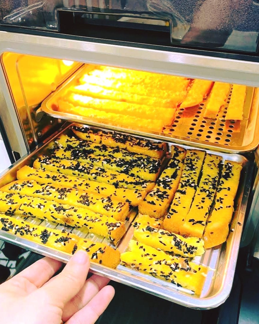 LƯU NGAY MÓN BÁNH TRÁNG MIỆNG THƠM NGON VỚI CÁCH LÀM BÁNH MÌ SANWICH TRỨNG - MẬT ONG TỤI NHỎ ĐIỀU THÍCH chuẩn bị: - Bánh mì sandwich: 4-6 lát (cắt thành que) - Trứng gà: 2 quả - Mật ong: 2 muỗng - Đường: 1 muỗng - Mè đen hoặc mè trắng: 2 muỗng - Dầu ăn hoặc mỡ heo. Đánh tan trứng, thêm mật ong và đường, quậy đều. Nhúng từng que bánh mì vào hỗn hợp trứng, đảm bảo bánh mì thấm đều. Lăn bánh mì đã nhúng qua mè đen hoặc mè trắng. Làm nóng nồi chiên không dầu ở 180°C, xếp bánh mì vào giỏ, quét một ít dầu ăn( mỡ lợn)lên mặt, nướng 8-10 phút đến khi bánh mì vàng giòn. ----- Nướng xong để vừa nguội là bỏ vào hộp đóng nắp lại ăn dần. Dễ làm mà ăn cuốn lắm luôn ý Chúc cả nhà thành công với cách làm trên nhé.