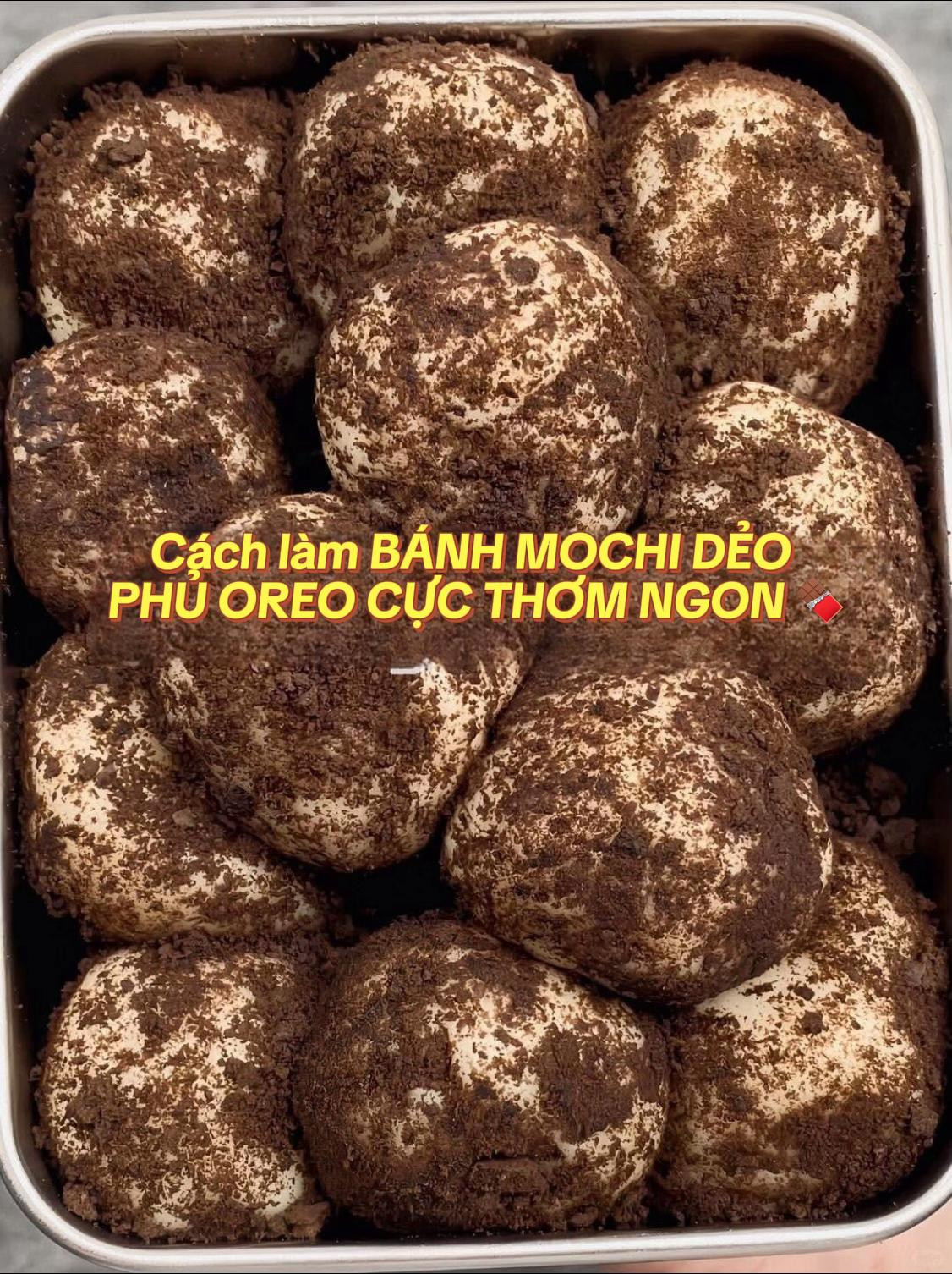 - Lăn viên mochi qua bột Oreo nghiền cho bám đều mặt ngoài rồi thưởng thức!