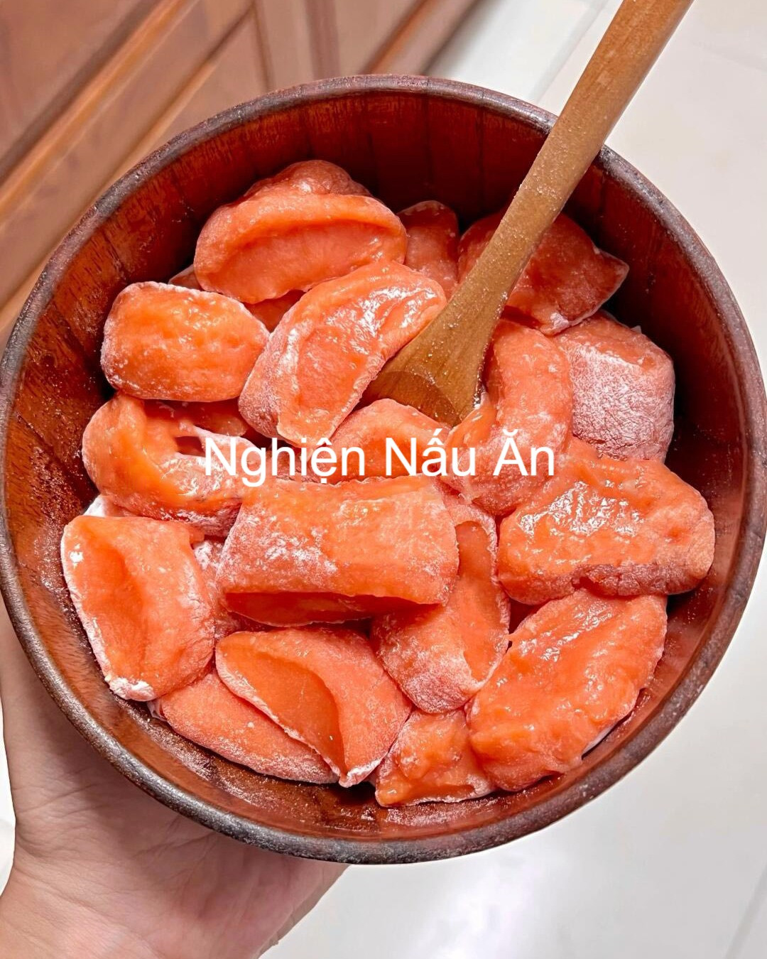 LƯU NGAY CÁCH LÀM BÁNH NẾP DƯA HẤU DẺO NGON LẠ MIỆNG. Nguyên liệu: - 250ml nước ép dưa hấu - 125g bột nếp - 7g bơ lạt - 10g bột nếp chín Cách làm: - Trộn đều bột nếp và nước ép dưa hấu đến khi thành hỗn hợp mịn. - Dùng màng thực phẩm bọc lại, đun s.ôi nước cho vào nồi hấp trong 15-20 phút cho chín. - Lấy ra, thêm bơ rồi nhào thành khối dẻo mịn. - Rắc bột nếp chín lên, nhào thêm vài lần rồi c.ắt thành từng miếng vừa ăn là hoàn thành! Chúc cả nhà thành công với cách làm trên.