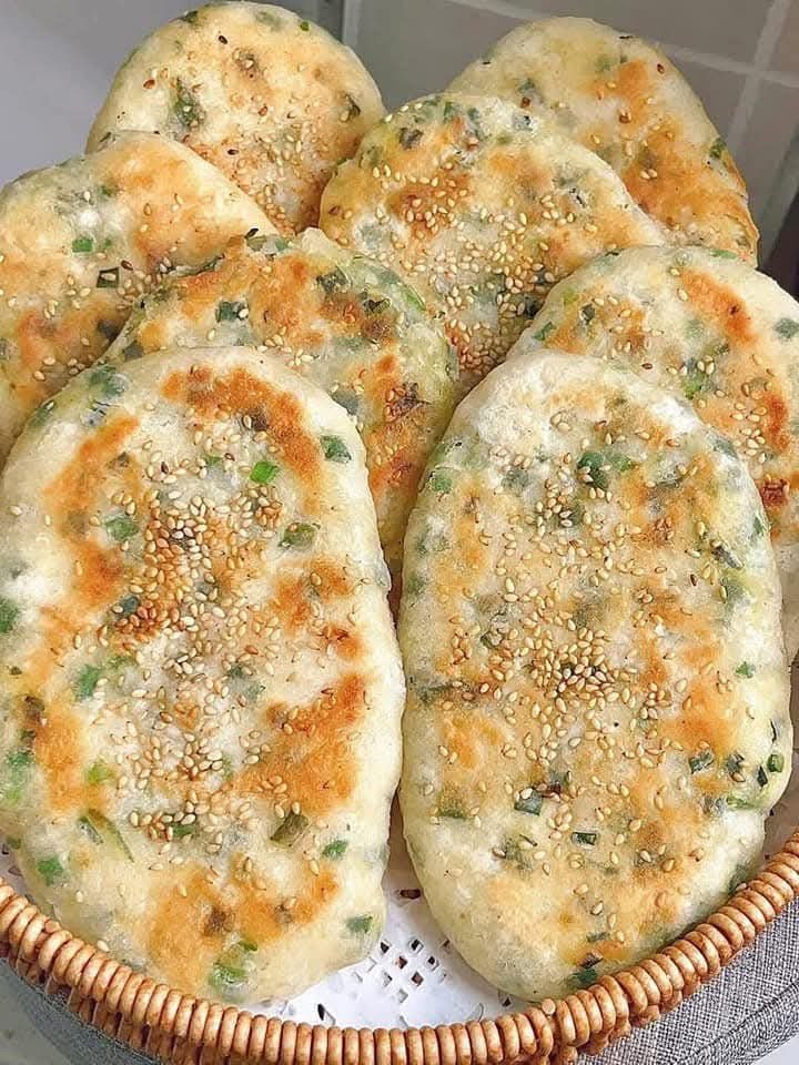 Bánh * Chuẩn bị nguyên liệu - Bột mì, muối tiêu, hành lá, men bột * Cách chế biến 1. Pha 300g bột mì, 3g men bột, 180g nước ấm rồi khuấy đều cho bột tan, quánh lại. Sau đó để cho bột nghỉ 2. Pha muối tiêu với dầu nóng, khuấy đều lên sao cho sệt lại để lát làm sốt quết lên bánh 3. Bột nghỉ xong thì mình sẽ nhào lại lần nữa để tan hết bọt khí đi, sau đó cán mỏng ra. Phết một lớp sốt vừa pha lên rồi rắc hành lá lên trên, sau đó cuộn tròn lại 4. Cắt bánh thành từng khúc, vê tròn lại rồi để bánh nghỉ thêm 10 phút nữa 5. Say đó, tiếp tục cán mỏng bánh ra rồi cho vào chiển đến khi bánh vàng đều hai mặt là được