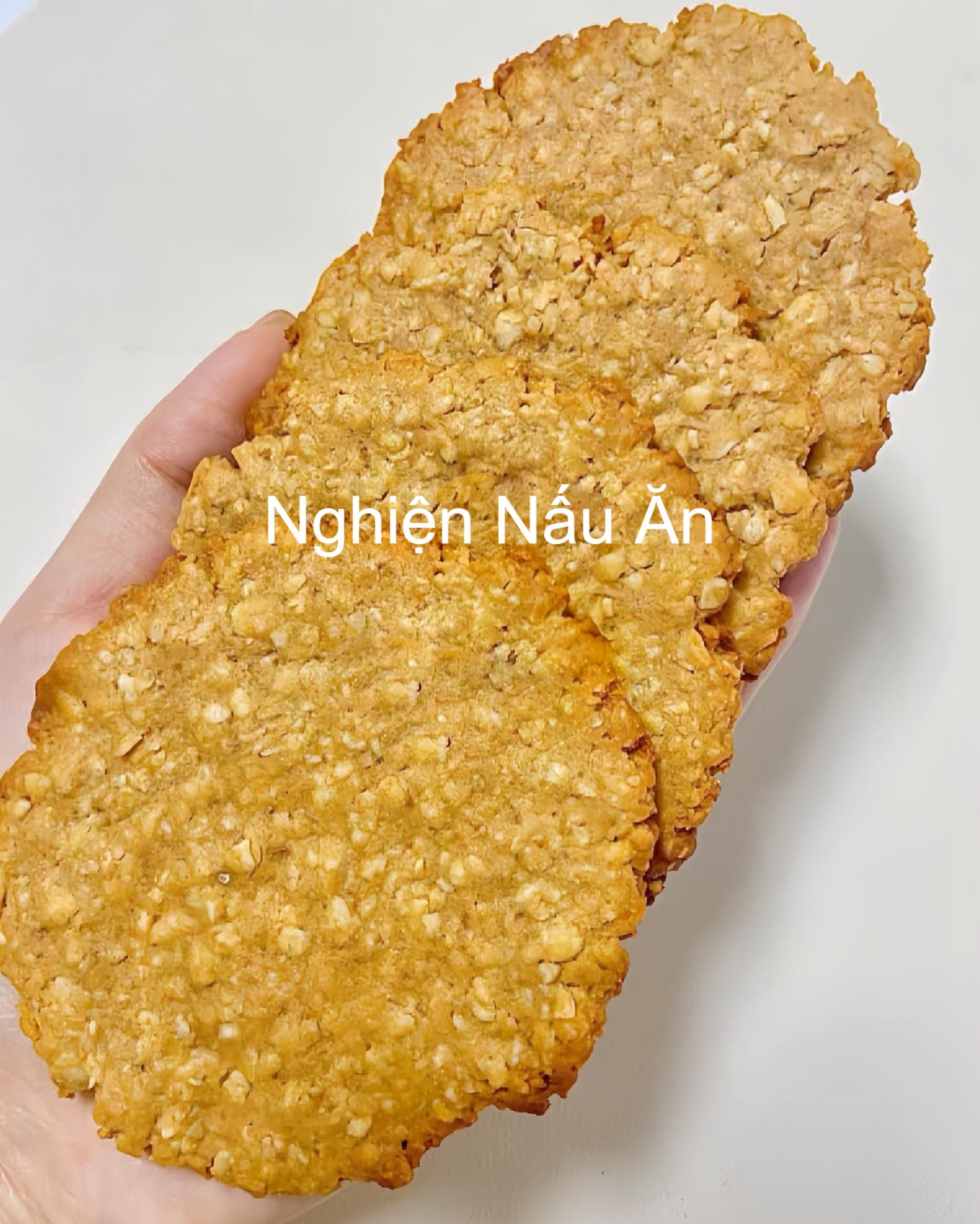 CÁCH LÀM BÁNH YẾN MẠCH ĐẬU PHỘNG GIÒN NGON DINH DƯỠNG Chuẩn bị nguyên liệu : - 35g yến mạch cán dẹt - 60g bơ đậu phộng - 40ml sữa tươi - 10g đường Cách Làm : 1 . Cho tất cả các nguyên liệu vào bát lớn , trộn đều cho hoà quyện . 2 . Chia hỗn hợp trên thành 6 phần , vo tròn , ấn dẹt . 3 . Xếp vào khay ( có lót giấy nến bên dưới ) , cho vào lò nướng ở 180° trong 20 phút . 4 . Sau khi bánh chín thì lấy ra , đợi nguội cho vào lọ đậy kín , bảo quản ở nơi khô ráo . Chúc cả nhà thành công với công thức này nhé.