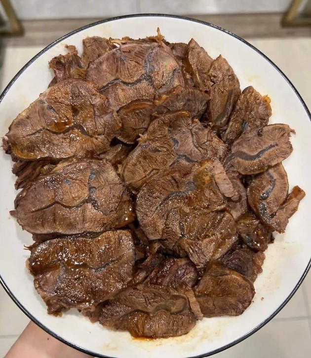 4 . Hũ thuỷ tinh ngâm bắp bò rửa thật sạch, tráng lại bằng nước nóng , để thật ráo nước. - Xếp bắp bò vào hũ thuỷ tinh, xen kẽ là một lớp tỏi gừng, ớt và tiêu xanh. Làm lần lượt đến hết và đổ ngập phần hỗn hợp nước tương vào. - Trời mùa đông thì để lọ bắp bò bên ngoài một ngày cho ngấm gia vị rồi hôm sau cất ngăn mát tủ lạnh. Mùa hè làm xong phải cất ngăn mát tủ lạnh luôn. - Sau 5 ngày mang ra ăn được, thái lát mỏng, rưới phần nước tương ngâm lên trên, trang trí thêm gừng tỏi ớt hạt tiêu và thưởng thức