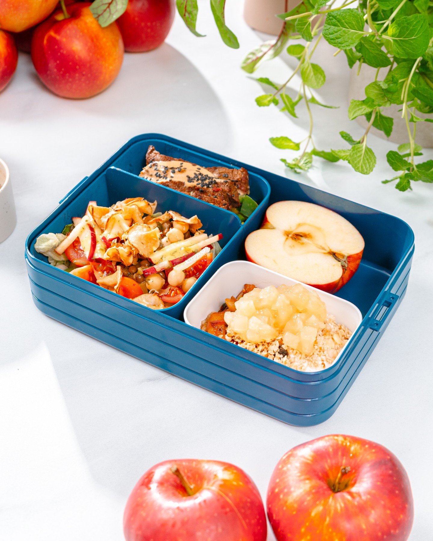Đến giờ thưởng thức lễ hội hương vị trong hộp bento của bạn! 🍱 Hãy thử sự kết hợp độc đáo của bít tết bò mềm ngon 🥩, đậu gà thơm nồng và cần tây giòn, và món tráng miệng - táo ngọt cùng sữa chua kem 🍎 Xem công thức dưới đây ⬇️ _______________ Nguyên liệu: 1 quả táo, 80g yến mạch giòn, 60ml sữa chua đặc, táo rang cùng 20g đường; salad: antrykot bò, 1 quả táo, 1 nhánh cần tây, 30g dưa leo, 30g cà chua bi, 30g rau xà lách, 40g đậu gà đã nấu chín, 5g cà chua khô; sốt: 20ml dầu oliu, rau mùi khô, một chút muối. _______________ Cách thực hiện: Antrykot bò ướp với muối và tiêu, sau đó áp chảo từng mặt. Khi thịt đã nguội, thái thành từng lát mỏng. Rửa sạch tất cả nguyên liệu cho salad. Cà chua, dưa leo, cần tây và táo cắt thành từng miếng nhỏ. Trong một hộp, đặt rau xà lách, thêm các loại rau đã cắt và đậu gà. Rưới sốt lên trên. Thịt bò thái lát đặt lên trên cùng của salad. Đối với món táo rang cùng yến mạch giòn: bóc vỏ và bỏ lõi một nửa quả táo, sau đó cắt hạt lựu và rang trên chảo với 1 muỗng canh đường. Trong một hộp khác, xếp lớp táo, sữa chua và yến mạch giòn. Chúc các bạn ngon miệng! 😊 _______________ #beefsteak #entrecote #apple #eatwell #foodstagram #cookingathome #europeanbeef #europeanapple #lunch #lunchbox #bento #TasteLunchbox #TasteEurope