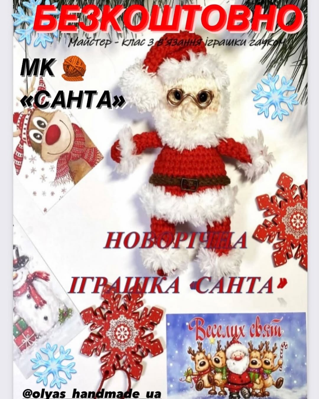 Безкоштовний майстер-клас з в'язання новорічної іграшки Санта