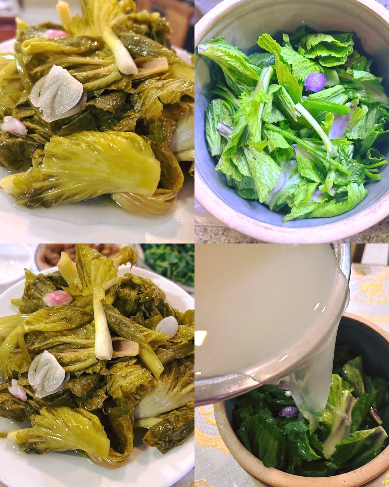 BÍ QUYẾT ĐỂ CÓ MÓN DƯA MUỐI CHUA THƠM NGON-GIÒN-VÀNG-NƯỚC DƯA TRONG VEO. Nguyên liệu: - Dưa cải sen - Nước vo gạo - giấm gạo -Muối -Đường - Hành lá -Hành củ khô Cách làm: - Đun sôi nước , để nguội, lấy nước đó mang đi vo gạo, gạn lấy nước vo gạo trong, để riêng. - Dưa cải rửa sạch, cắt khúc vừa ăn, ngâm nước muối loãng 1 tiếng. Sau đó vớt ra để ráo. - Hành lá, hành củ cắt rửa sạch - Lấy 1 Âu bằng gốm, sứ hoặc thủy tinh, rửa sạch tráng nước nóng, đđể khô. - Pha nước muối dưa: cho giấm, đường, muối biển hạt to theo tỷ lệ 1 thìa giấm:1 thìa muối hạt:1 thìa đường vào nước vo gạo - Cho dưa, hành củ, hành lá vào Âu muối dưa, đổ hỗn hợp nước vo gạo đã pha vào ngập dưa. Sau 2 ngày dưa thơm khắp bếp. Chúc cả nhà thành công với cách làm trên nhé.