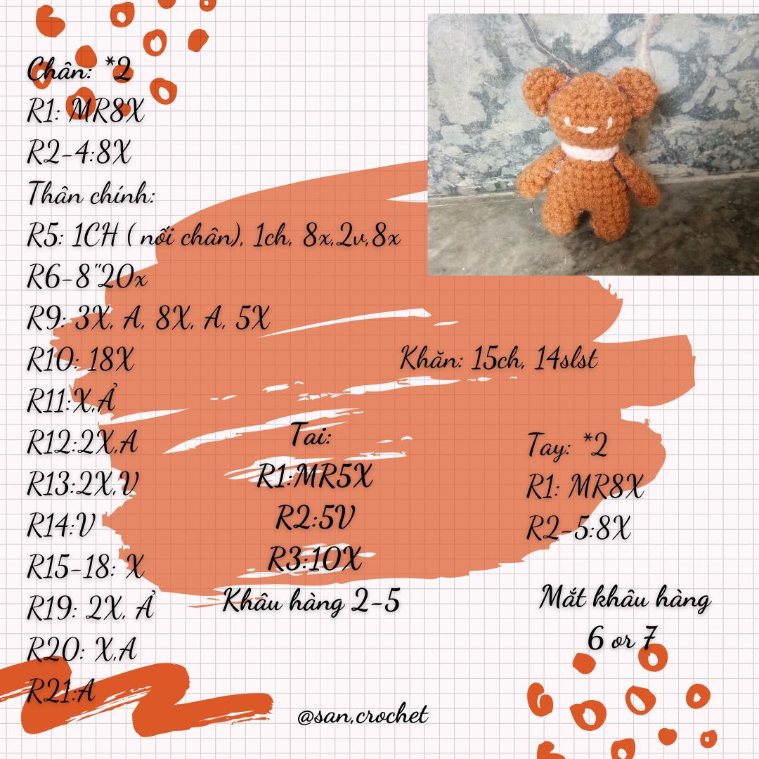 Biểu đồ móc len amigurumi gấu nhỏ dễ thương cho người mới bắt đầu