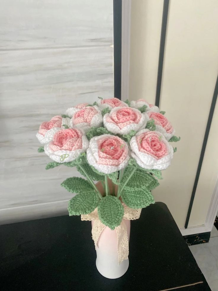 Bó hoa hồng móc len tinh tế cho không gian thêm lãng mạn