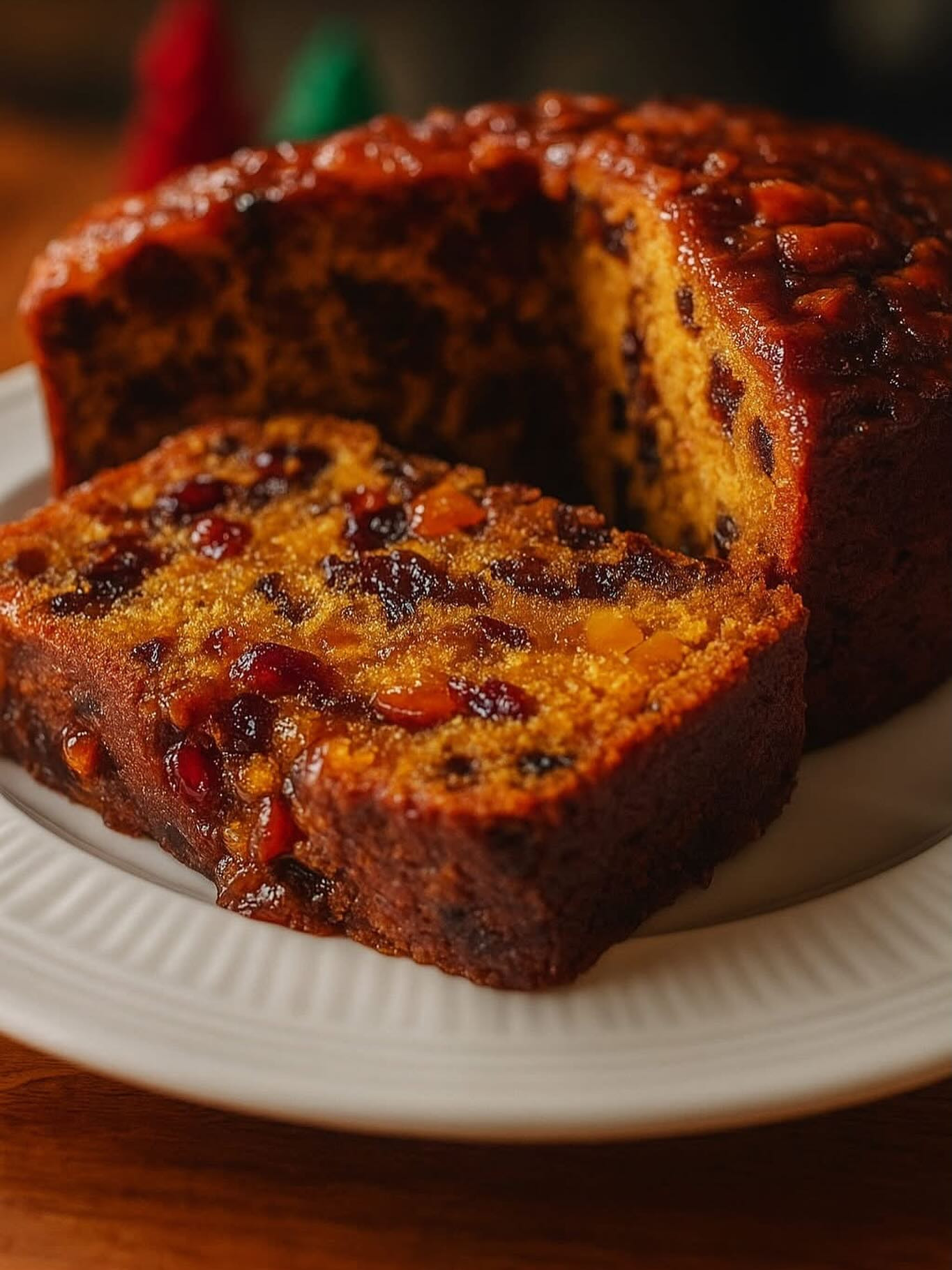Bolo de Frutas de Natal Tradicional Perfeito para o clima das festas! Esse bolo é úmido, aromático e cheio de pedacinhos de frutas cristalizadas e uvas-passas que derretem na boca.