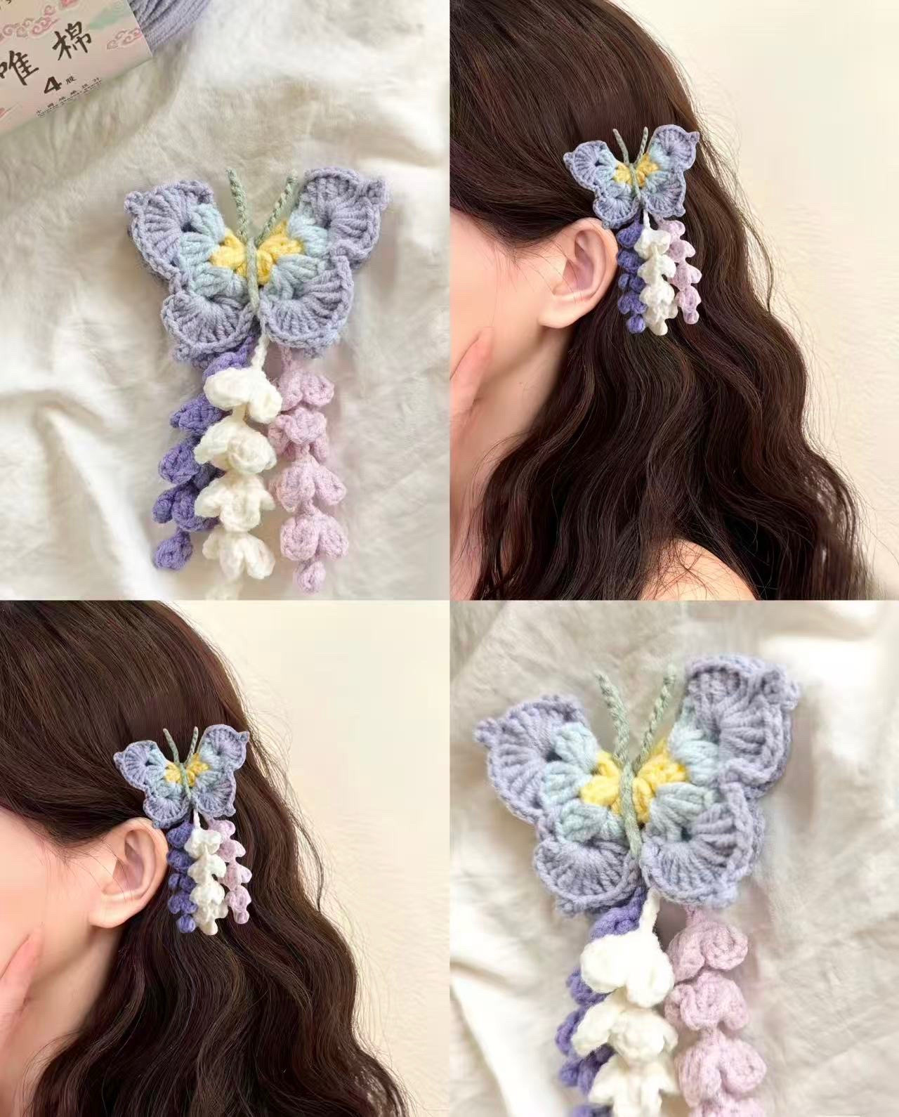Pino de cabelo de borboleta super bonito 🦋, super bonito de usar na cabeça, o tutorial está no último, siga-me para ensinar mais trabalhos de tricô bonitos#diy #croche #artesanato #foru #fyp