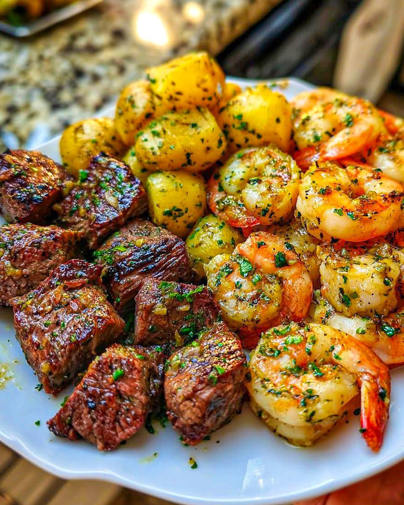 Đổi Vị Cực Đã Với Combo Tôm Bơ Tỏi Và Bò Bít Tết Ăn Cùng Khoai Tây
