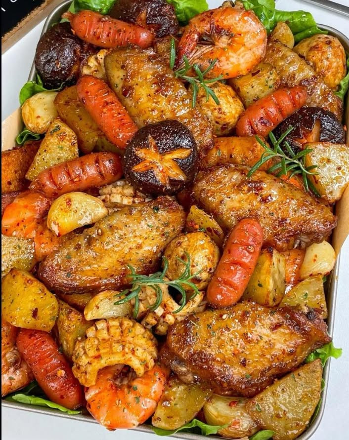 👉 Thế là có ngay khay nướng nóng hổi, thơm lừng, ăn chơi hay ăn chính đều ngon! 😋🔥 Ẩn bớt