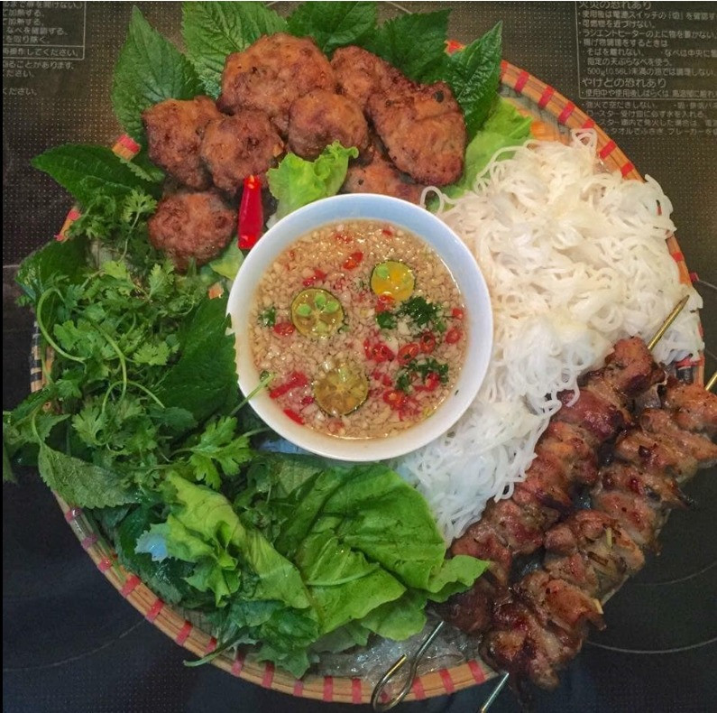 Bún chả nướng 🙂 Đến bì cũng giòn nhé 🙂 1. Làm chả nướng - Thịt vai chọn phần có cả mỡ lẫn nạc, bì mỏng thì khi nướng sẽ rất giòn. + 300g thịt bỏ bì xay làm chả viên + 300g thịt thái miếng mỏng vừa để làm chả miếng, thái mà miếng bì khoảng 1,5mm, chú ý không được thái dọc thớ thịt nhé 🙂 - Ướp thịt với hạt tiêu (ở đây Cỏ dùng cả tiêu xanh tươi giã dập và tiêu xay, rất thơm), 1 thìa con nước mắm, 1 thìa con dầu hào, 1 xíu đường vàng hoa mai, hành khô băm nhuyễn, 1 nhánh sả nhỏ đập dập thái nhỏ, 1 xíu hạt nêm, 1 xíu bột canh. Ướp trong tối thiểu 1h cho ngấm gia vị. Trước khi nướng 5' cho thêm 1 thìa nhỏ dầu ăn trộn đều. (Lưu ý là gia vị tuỳ theo khẩu vị mỗi người, bạn có thể pha riêng ra bát con, thử vừa ý thì cho vào ướp với thịt) - Đối với thịt xiên thì cuộn phần thịt và mỡ vào trong, bì ra ngoài. Xiên thịt dàn đều, k dồn chặt quá tránh bên ngoài chín vàng rồi mà bên trong chưa chín. - Điều quan trọng đó là dụng cụ nướng. Nhà Cỏ dùng bếp từ có 1 khay nướng điện nhưng có khói và mùi thì không khác gì nướng than hoa nên chỉ việc cho thịt vào để mức 3 (to nhất) trong 3' rồi hạ về mức 2 đến khi chín vàng đối với thịt băm, đối với thịt xiên thì liên tục trở mặt khi 1 mặt đã xém vàng, sau đó hạ mức 2 thêm 3' là được. - Nếu sử dụng lò nướng thì để lò nóng rồi cho xiên vào nướng với nhiệt độ 200 độ và trở đều liên tục đến khi chín vàng đều, để chế độ nướng đối lưu. 2. Pha nước chấm: - Tỏi băm nhuyễn, pha với dấm, ngâm khoảng 10'. Thêm đường hoa mai khuấy đều, thêm nước sôi để nguội khuấy tan đều, cuối cùng là thêm mắm, ớt, thêm quất nếu thích. Tỷ lệ dấm, đường, nước, mắm là 1:1:3:1, nêm nếm lại theo khẩu vị Chúc các bạn thành công! Ẩn bớt