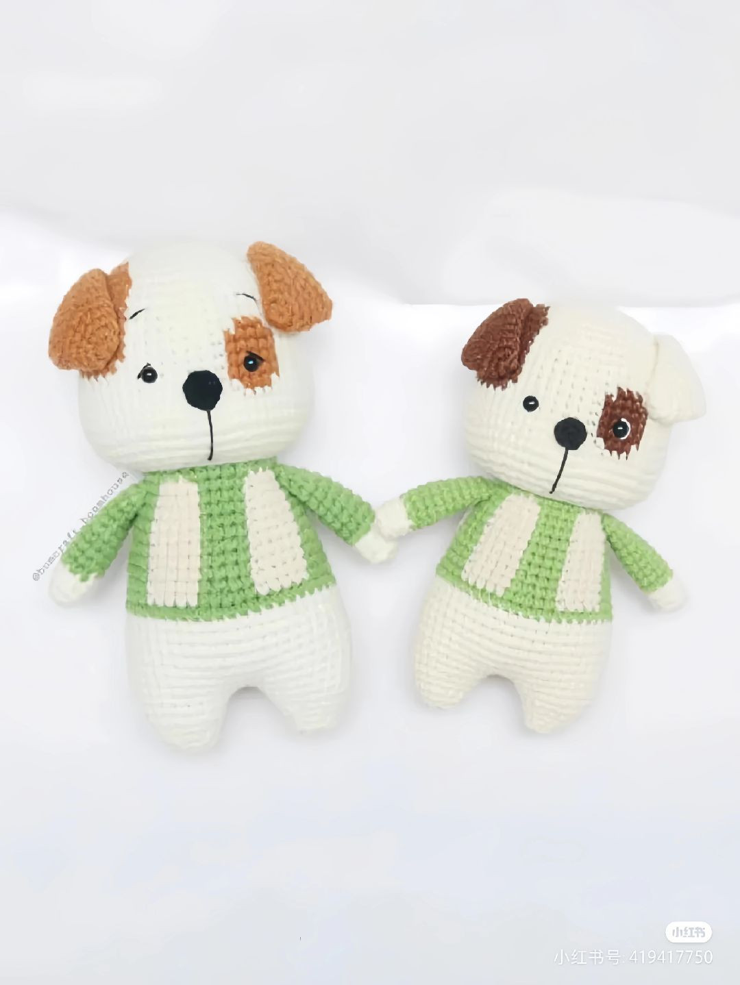 Búp bê chó len móc đôi dễ thương hình trái tim