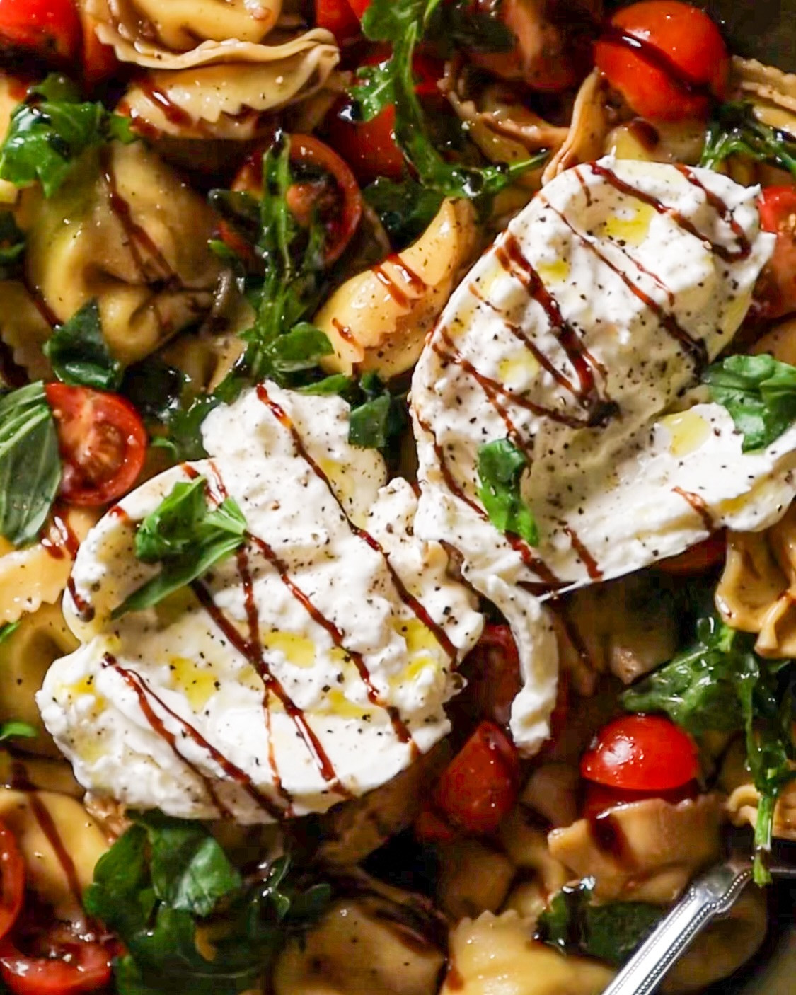 Burrata Bliss: Caprese Tortellini with Balsamic Honey Delight