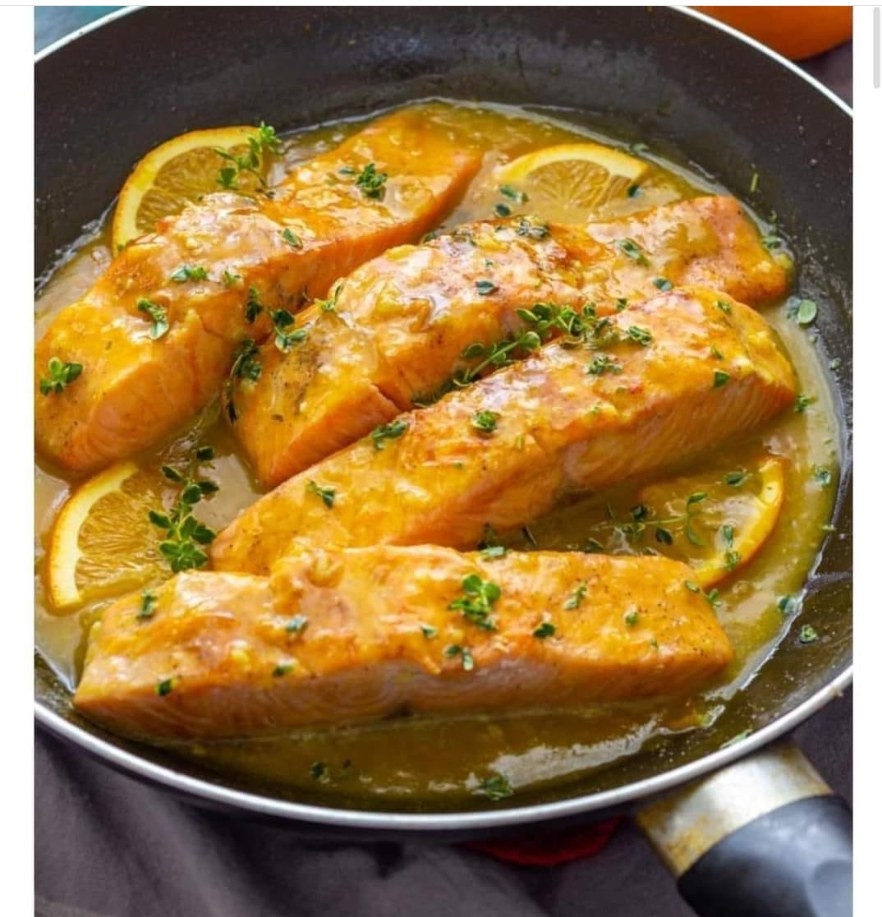 CÁCH NẤU CÁ HỒI SỐT CAM 1. Nguyên liệu - File Cá Hồi : 250gr - Bơ lạt: 20gr - Tỏi: 5 tép - Cam: 1 quả vắt lấy nước cốt - Nước mắm: 2 thìa cf - Đường: 1 thìa cf - Bột ngọt: 1/2 muỗng cà phê - Tương ớt: 1 thìa cf - Dầu hào: 1 thìa cf - Tiêu: 1/3 muỗng cà phê tiêu 2. Sơ chế nguyên liệu - File Cá hồi sơ chế thái miếng hình bao diêm - Tỏi đập dập - Cam vắt lấy nước cốt 3. Làm nước sốt Mọi người lấy 1 quả vắt lấy nước cốt (200ml)+ Nước mắm: 2 thìa cf + Đường: 1 thìa cf + Bột ngọt: 1/2 muỗng cà phê + Tương ớt: 1 thìa cf + Dầu hào: 1 thìa cf. Tiến hành khuấy đều cho đường tan và các gia vị hoà quyện vào với nhau. 4. Áp chảo cá hồi Bắc chảo lên bếp, cho bơ vào làm tan chảy, tiếp theo cho chả cá vào áp chảo 2 mặt với lửa vừa. Cho tỏi băm vào cùng cho thơm, chú ý canh cho tỏi không bị cháy xém sinh độc tố. Xong, gắp cá ra đĩa, dùng chảo làm nước sốt 5. Sốt cá với nước cốt cam Mọi người cho hỗn hợp nước sốt đã pha vào chảo và tiến hành đảo đều. Khi nước sốt hơi sánh lại mọi người cho cá đã áp chảo vào đun cho nước sốt cô lại, lúc đun lấy vá múc nước mắm tưới lên mình cá liên tục cho thấm nha. Đến khi nước sốt cạn hết, thấm và áo vào cá tầm 5 phút là xong tắt bếp. Rắc tiêu, trang trí lên đĩa là xong. Cre:sưu tầm