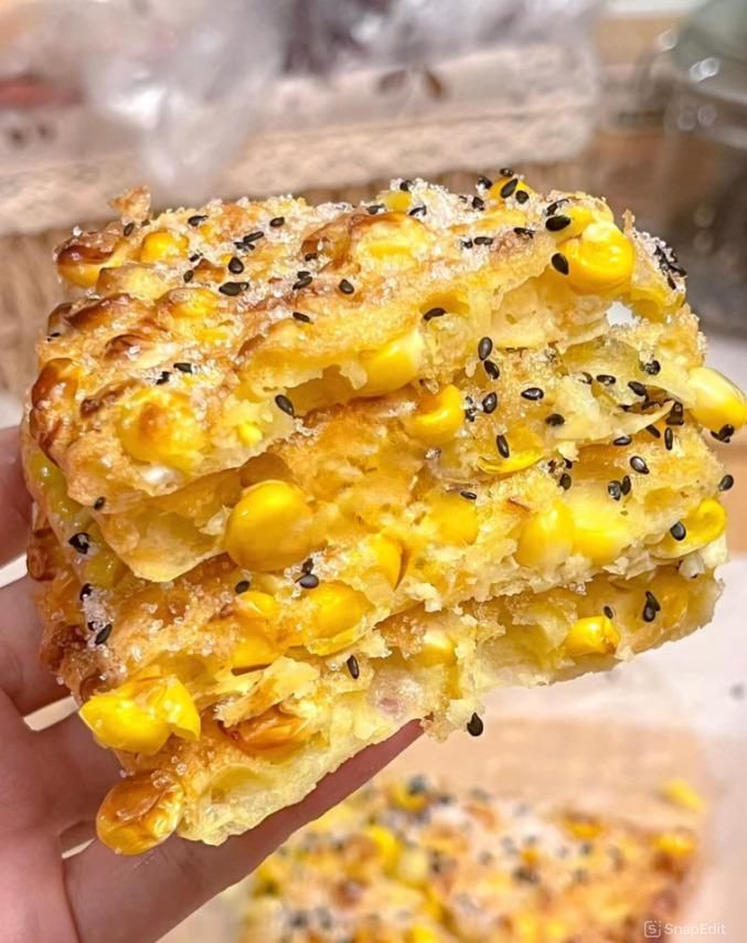 CÁCH LÀM BÁNH BẮP NGÔ GIÒN NGON , ĐƠN GIẢN . Chuẩn bị nguyên liệu : - 200g ngô tách hạt - 1 quả trứng gà - 1 thìa đường trắng - Nửa thìa mè đen - 2 thìa bột bắp - 2 thìa dầu ăn Cách Chế biến : 1 . Cho ngô tách hạt vào bát . Thêm 2 thìa bột bắp , 2 thìa dầu ăn và 1 quả trứng vào trộn đều . 2 . Đổ hỗn hợp trên vào nồi chiên không dầu ( Có lót giấy nến bên dưới ) ở 180° trong 9 phút . 3 . Sau đó rắc đường và mè đen lên bề mặt bánh , tiếp tục nướng thêm 3 phút nữa là xong . Chúc các bạn thành công với công thức này nhé