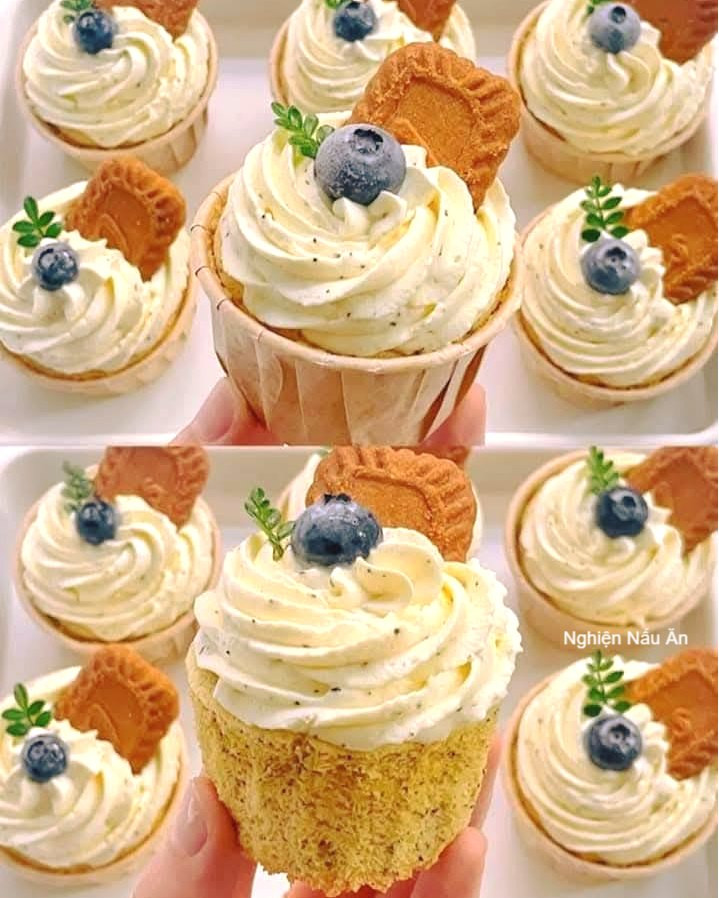 CÁCH LÀM BÁNH CUPCAKE TRÀ BÁ TƯỚC NHẸ NHÀNG, THANH LỊCH, THƠM NGÁT HƯƠNG TRÀ Nguyên liệu phần bánh: - 30g sữa tươi - 30g dầu thực vật - 2g bột trà bá tước - 50g bột mì số 8 - 3 quả trứng - 3g nước cốt chanh - 35g đường Nguyên liệu phần kem: - 200g whipping cream - 25g đường - 2g bột trà bá tước Cách làm chi tiết: Chuẩn bị bột bánh - Trộn dầu, sữa và bột trà bá tước cho hòa quyện. - Rây bột mì vào, khuấy đều. Tách trứng - Tách lòng đỏ và lòng trắng riêng. - Cho lòng đỏ vào hỗn hợp bột, trộn mịn. Đánh lòng trắng - Đánh lòng trắng ở tốc độ thấp đến khi có bọt to. - Thêm nước cốt chanh. - Chia đường thành 3 lần cho vào, đánh đến khi bông đặc, có chóp mềm. Trộn hỗn hợp - Cho ⅓ lòng trắng vào hỗn hợp bột, trộn nhẹ. - Đổ ngược lại phần bột vào lòng trắng còn lại, khuấy đều. Nướng bánh - Cho bột vào túi bắt kem, bơm vào khuôn cupcake (không quá đầy). - Nướng ở 120°C trong 45 phút, sau đó tăng lên 150°C thêm 10 phút. - Lấy ra, để nguội 5 phút. Làm kem trà bá tước - Đánh whipping cream, đường và bột trà bá tước đến khi bông mịn. - Cho vào túi bắt kem, trang trí lên bánh. - Thêm bánh quy mini hoặc việt quất tươi để đẹp mắt và ngon hơn. Thành phẩm: - Cupcake mềm xốp, thơm dịu hương trà bá tước. - Lớp kem whipping mịn mượt, béo nhẹ, hòa quyện vị trà thanh thoát. - Trang trí thêm trái cây hoặc bánh quy mini tạo điểm nhấn xinh xắn. Mẹo nhỏ: - Để bánh không bị xẹp, khi trộn lòng trắng cần thao tác nhẹ tay. - Có thể thêm vài giọt tinh dầu vani để hương vị phong phú hơn. Chúc cả nhà thành công với món cupcake trà bá tước vừa sang trọng vừa ngon miệng, cực hợp cho tiệc trà chiều! #dilicious #cooking #nghiennauan