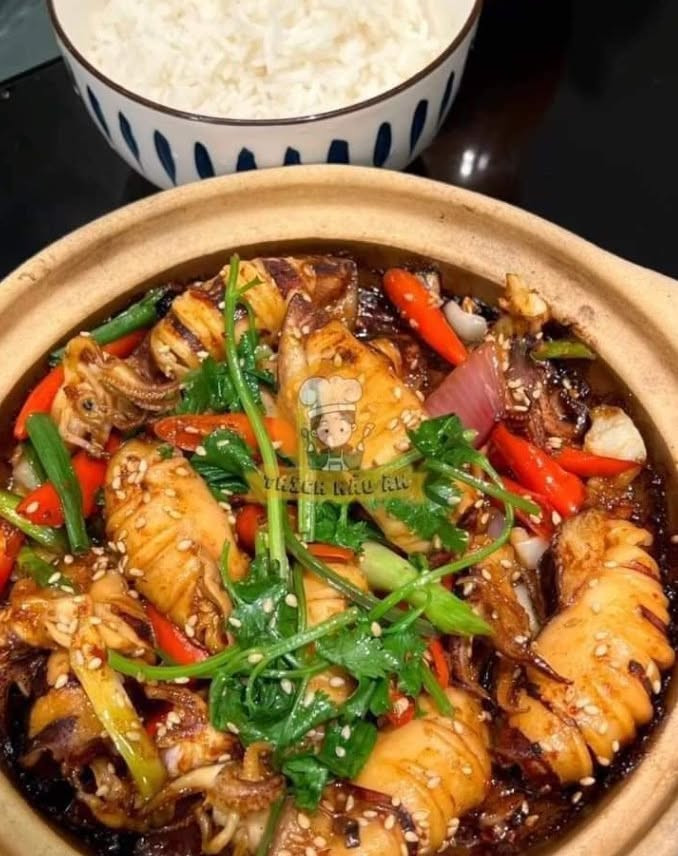 CÁCH LÀM MỰC XÀO CAY ĐỔI VỊ BỮA CƠM CHO CẢ NHÀ 🦑 Chuẩn bị nguyên liệu : - 500g mực ống - 1 củ hành tây - Gừng , ớt , rau ngò - Gia vị : Nước tương , đường , hắc xì dầu , dầu hào , muối , bột thì là , bột ớt , mè rang . Cách Chế biến : 1 . Mực sơ chế sạch , khứa dọc thân , để ráo . 2 . Pha nước sốt theo tỉ lệ : 1 thìa bột ớt , 1 thìa dầu hào , 2 thìa nước tương , 1 ít hắc xì dầu ,bột thì là , muối và đường 3 . Để mực thật ráo nước rồi thì cho vào chảo chiên . Đến khi ra hết nước thì đổ phần nước đi ( Thêm 1 ít dầu vào ) 4 . Tiếp đó cho nước sốt đã pha cùng rau ngò , mè rang và ớt xắt vào . Nấu đến khi sốt sệt lại thì tắt bếp . 5 . Cho hành tây và gừng thái lát vào nồi đất , xào đến khi nghe mùi thơm . - Cho phần mực vừa xào vào lên trên , nấu thêm 20 giây nữa là có thể thưởng thức được rồi . - Món này ăn cùng cơm rất ngon . Chúc các bạn thành công với công thức này nhé