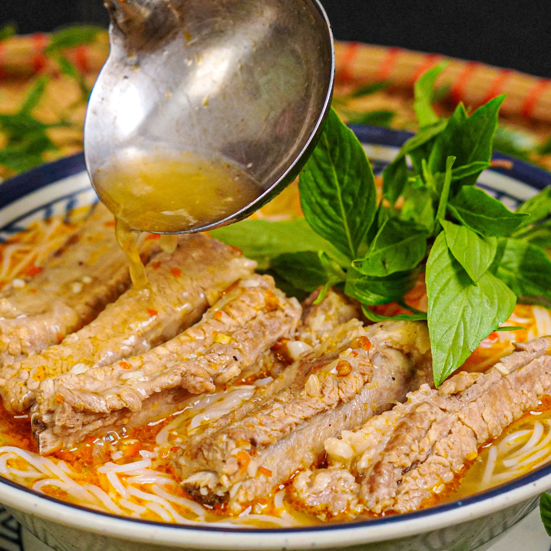 CÁCH NẤU BÚN SƯỜN LÁ QUẾ NƯỚC DÙNG TRONG VEO NGỌT THANH, SƯỜN MỀM THƠM NGON NHƯ NHÀ HÀNG Nguyên liệu: - 700g sườn non - Muối, chanh, gừng - Hành tím, tỏi, ớt sừng - 2 lít nước - 1 muỗng cốt nền cô đặc Knorr - 1 muỗng đường - 2 muỗng tương ớt - 1 muỗng sa tế - Tiêu xay - 1 củ hành tây - Lá quế - Bún tươi hoặc miến Nguyên liệu nước chấm sả ớt: - 1 trái ớt sừng - 3 trái ớt hiểm - 10g tỏi - Nhúm rau ngò - 2 muỗng đường - 30ml nước mắm - 30ml cốt tắc - 20ml nước lọc Cách làm: - Rửa sạch sườn bằng muối và chanh 5p, trụng sườn 5p với gừng và muối rồi rửa lại cho sạch hoàn toàn - Xay nhuyễn hành tím, tỏi, ớt sừng - Phi thơm hỗn hợp hành tỏi ớt, cho sườn vào xào đến khi săn lại - Đổ 2 lít nước vào nồi, đun sôi - Cho 1 muỗng cốt nền cô đặc Knorr vào, khuấy đều - Nấu sườn 10p rồi nêm đường, tương ớt, sa tế, tiêu. Thêm hành tây bổ múi cau - Hớt bọt nhẹ nếu có, giữ lửa nhỏ và không đậy nắp để nước trong - Khi sườn mềm, vớt bỏ xác hành tỏi, nêm lại cho vừa miệng - Thả lá quế vào nhúng 30 giây cho thơm rồi tắt bếp Cách làm nước chấm sả ớt: - Cho ớt sừng, ớt hiểm, tỏi, rau ngò, đường, nước mắm, cốt tắc và nước lọc vào máy xay, xay nhuyễn Thưởng thức: - Cho bún hoặc miến ra tô, xếp sườn lên trên - Chan nước dùng trong veo, nóng hổi - Thêm lá quế tươi, ớt sừng hoặc tiêu xay nếu thích cay - Chấm sườn với nước chấm sả ớt siêu hợp vị Chúc cả nhà làm thành công món bún sườn lá quế thơm ngon này, nếu thấy ngon nhớ chia sẻ cho mọi người cùng thử nhé!