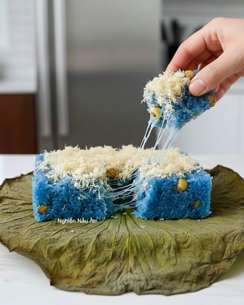 CÁCH NẤU XÔI HẠT SEN DỪA HOA ĐẬU BIẾC DẺO THƠM, BÉO BÙI, MÀU XANH NGỌC BÍCH ĐẸP MẮT Nguyên liệu 600g gạo nếp cái hoa vàng 200g hạt sen khô 100g hoa đậu biếc khô 100g dừa nạo 50ml nước cốt dừa 2 muỗng đường, 5g muối, 1 muỗng bột nghệ Lá dứa để tạo hương thơm Các bước thực hiện Tạo màu cho gạo nếp Ngâm hoa đậu biếc khô với nước sôi 15 phút, lọc lấy nước màu xanh biếc. Vo sạch gạo nếp, ngâm với nước hoa đậu biếc + 1 muỗng bột nghệ trong 2 giờ để hạt nếp thấm màu. Nấu hạt sen Ngâm hạt sen khô 1 giờ, sau đó luộc 30 phút cho mềm bở nhưng không nát. Hớt bọt thường xuyên để nước trong, sen không bị chát. Hấp xôi Trộn gạo nếp đã ngâm với 5g muối. Chuẩn bị nồi hấp, cho vài lá dứa vào phần nước bên dưới để tạo hương thơm. Hấp gạo trong 30 phút đến khi mềm. Cho hạt sen, dừa nạo, đường và nước cốt dừa vào, đảo nhẹ rồi hấp thêm 15 phút. Hoàn thiện & trình bày Xôi chín dẻo, hạt sen bùi, dừa thơm ngậy, màu xanh ngọc mướt mắt. Múc ra đĩa, rắc thêm dừa nạo lên trên cho bắt mắt. Thành phẩm Xôi sen dừa hoa đậu biếc có màu xanh ngọc bích tự nhiên, hạt nếp dẻo thơm, sen bùi béo, dừa ngậy, thoang thoảng hương lá dứa. Không cần phẩm màu, chỉ với hoa đậu biếc và chút bột nghệ đã tạo nên món xôi vừa đẹp vừa ngon, ăn là ghiền. Mẹo nhỏ: Nếu muốn xôi thêm bóng mượt, bạn có thể rưới thêm chút nước cốt dừa khi xôi còn nóng. Chúc cả nhà thành công với công thức trên.