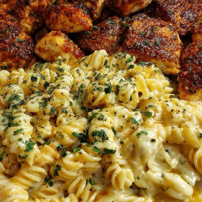 🍽️ Garlic Cajun Chicken Cheesy Rotini in Velveeta Cream Sauce