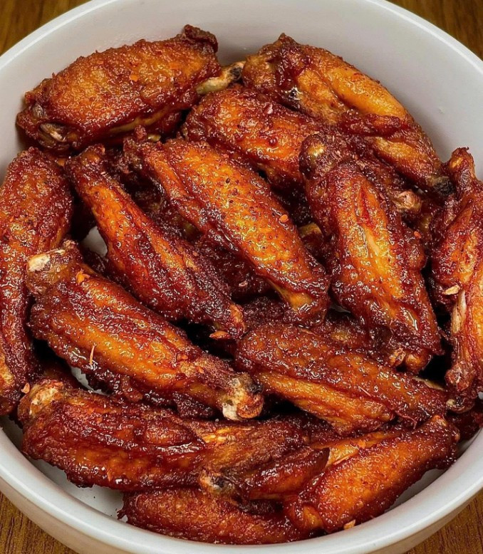 * Chuẩn bị nguyên liệu: - Cánh gà, tỏi, gừng, hạt tiêu, trứng gà, bột chiên giòn - Gia vị: nắm, xì dầu càng cua, dầu hào * Cách chế biến 1. Ưóp cánh gà: cánh gà rửa sạch rồi chặt làm đôi, ướp cùng hành, gừng, 1 thìa nước mắm, 1/2 thìa xì dầu đen, 1 thìa dầu hào, 1 thìa rượu nấu ăn, một chút muối và hạt tiêu xay, trộn đều lên rồi ướp 25 phút 2. Sau đó, nhặt hết hành gừng ra, đập 1 quả trứng gà vào, cho thêm 1 thìa dầu ăn, 2 thài bột chiên giòn, xóc đều lên 3. Đun sôi dầu rồi cho cánh gà vào chiên. Khi thấy phần da xém vàng thì mình sẽ vớt ra để cho ráo dầu. Tiếp tục đun dầu sôi già thêm một chút rồi cho cánh gà vào chiên lại đến khi phần da vàng óng thì gắp cánh gà ra. Để ráo dầu, rắc thêm chút muối tiêu và bột ớt lên trên nữa là có thể thưởng thức được rồi.