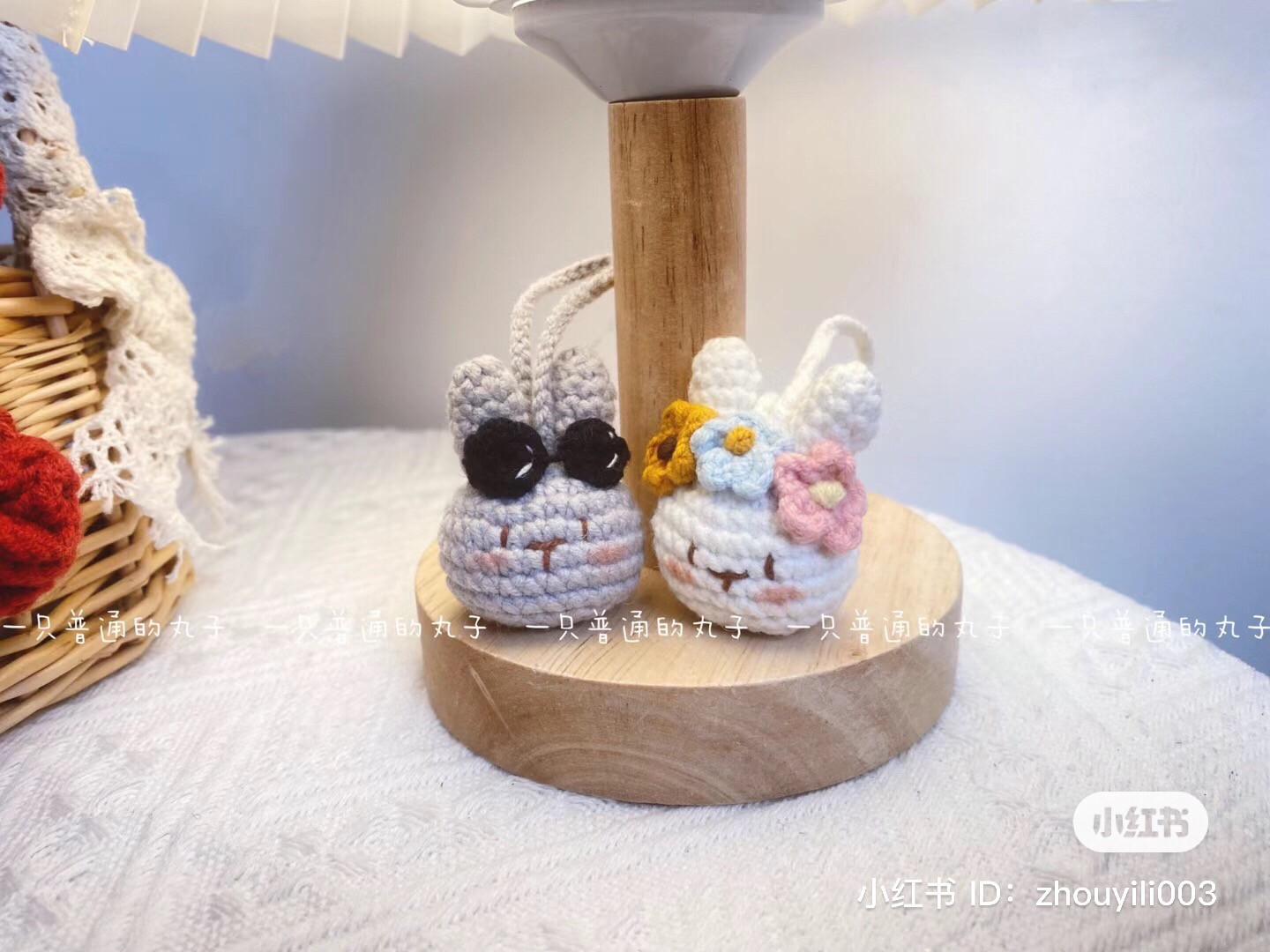 Cặp thú móc len dễ thương với tai thỏ và hoa trang trí