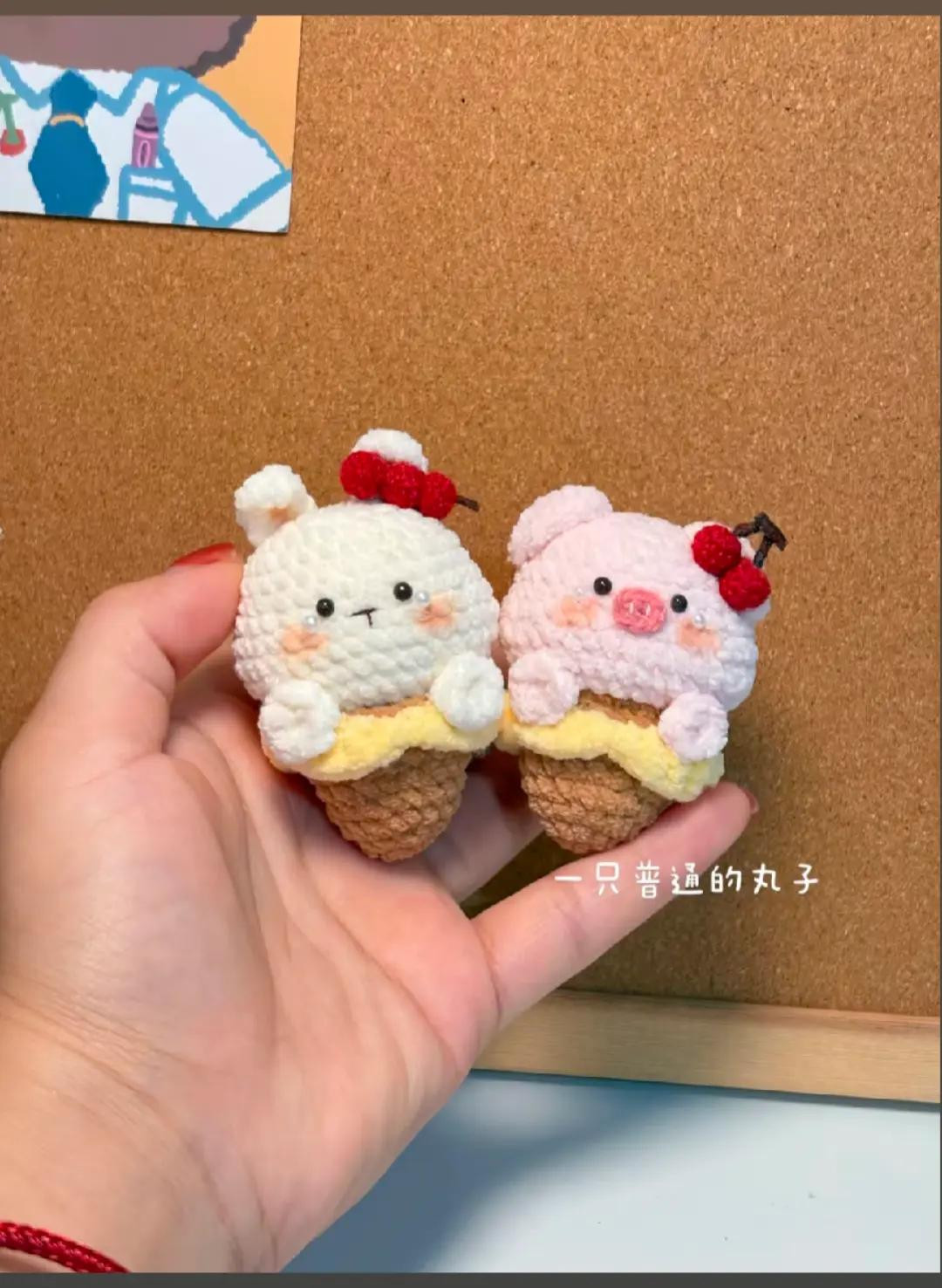Cặp thú nhồi bông hình kem đáng yêu với quả cherry trên đầu